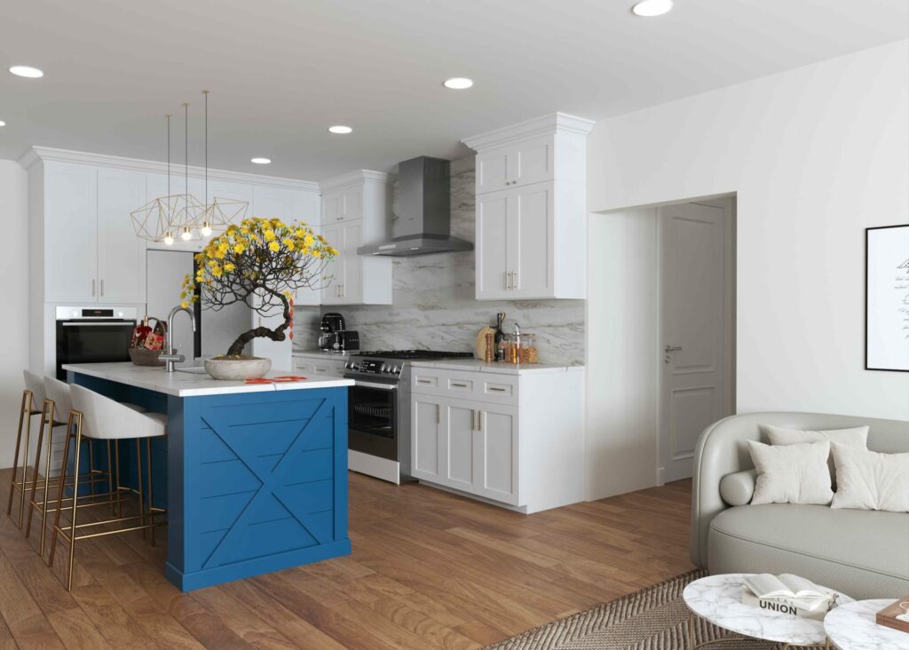 Home cooks are always looking for new, unique ways to transform their kitchens, and blue kitchen cabinets are surging in popularity as a striking, stunning solution. They make for classic statement pieces and are ideal for indoor and outdoor culinary spaces thanks to their modern design and versatility. Dreaming of blue kitchen cabinets? Here are some smart ways to use them effectively. We’ll help you pick out new wall colors, wallpapers, and floors as well so your kitchen looks stunning all around.