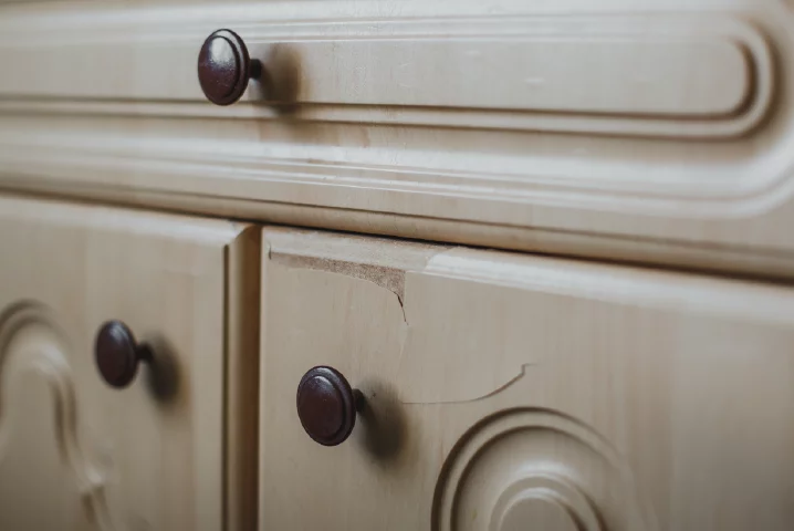 If your cabinets are made of wood, whether they’re solid wood or some kind of fiberboard, the chances are that they have been absorbing and releasing moisture on and off for the whole time you have had them. Even in climates where it isn’t particularly humid, wood contracts and expands with the seasons. While this is normal, the wood will eventually begin to crack after many years of this process. If you notice any cracking or severe swelling, your cabinets are showing signs that they’re on their way out.