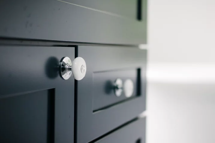 If you’re not the type of person who likes ornate hardware, you’ll need to be extra sure that your handles and knobs blend into your flat panel cabinets, as they tend to let the hardware do the talking.