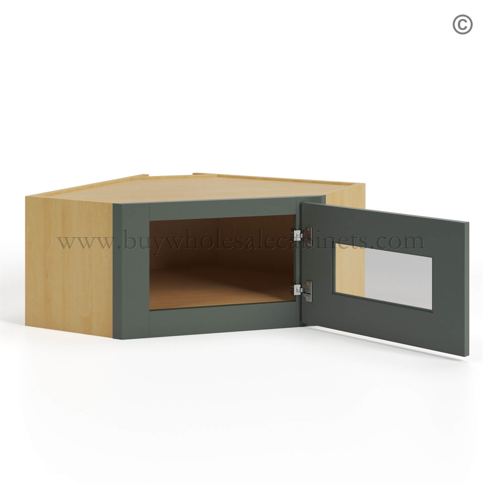 Buy Wholesale Cabinets Green Shaker 12″x 24″ Diagonal Corner Wall Shelf with Frosted Glass Door