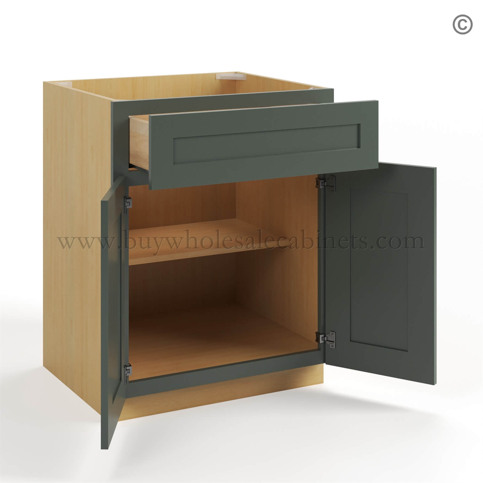 Green Shaker Base Cabinet with Double Doors & Single Drawer