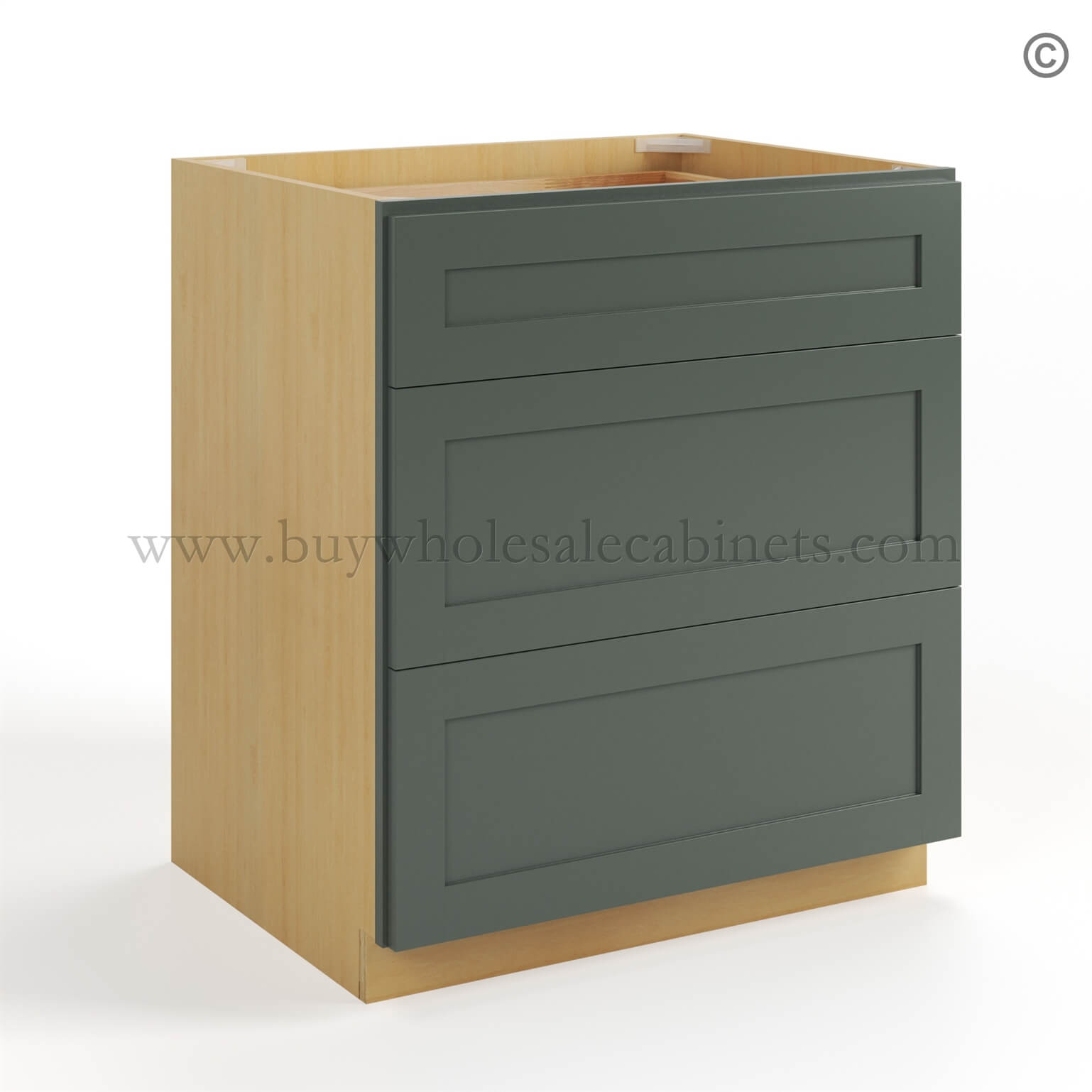 Buy Wholesale Cabinets Green Shaker Three Drawer Base is available in 9 sizes.