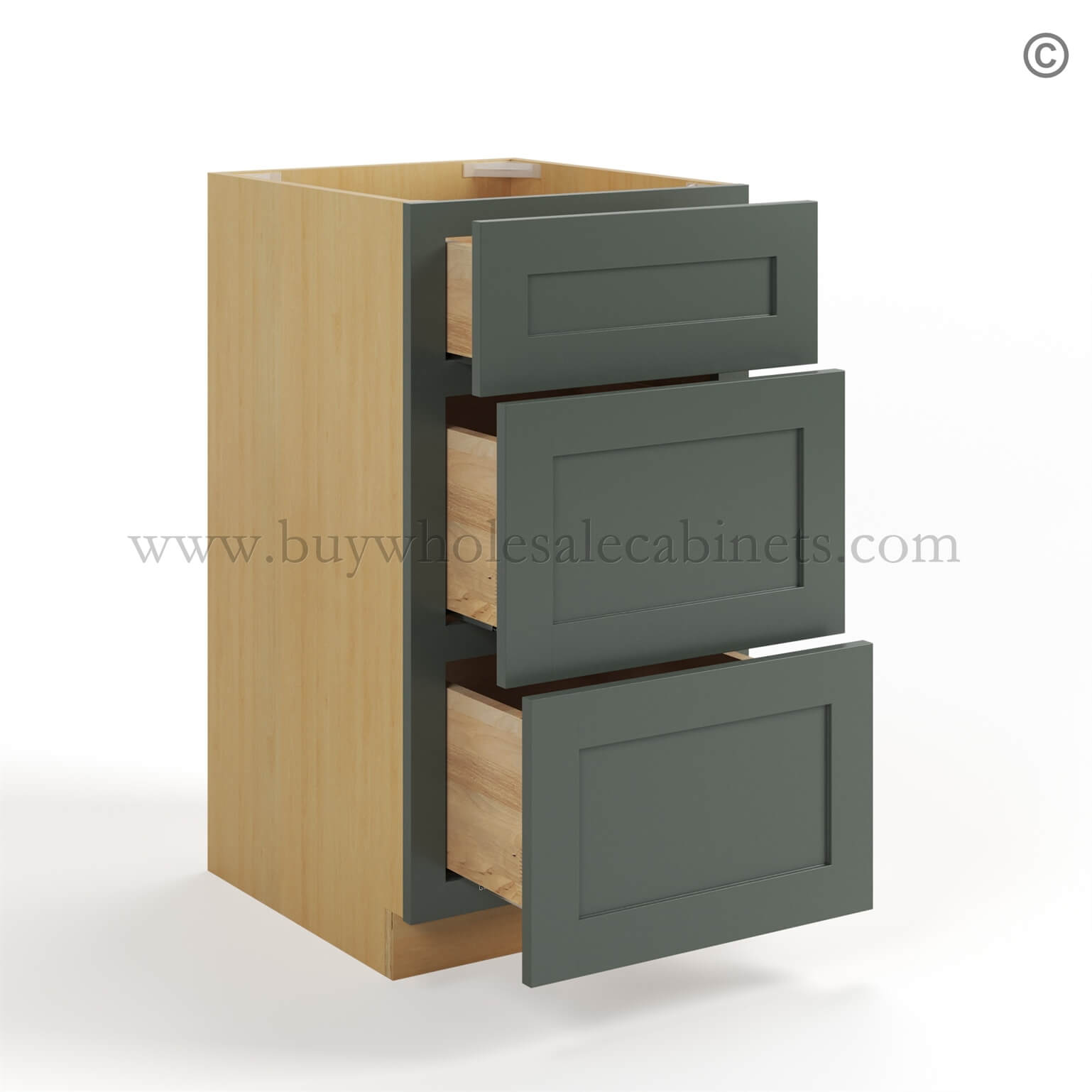 Buy Wholesale Cabinets Green Shaker Vanity Three Drawer Base Cabinet is available in 3 sizes.