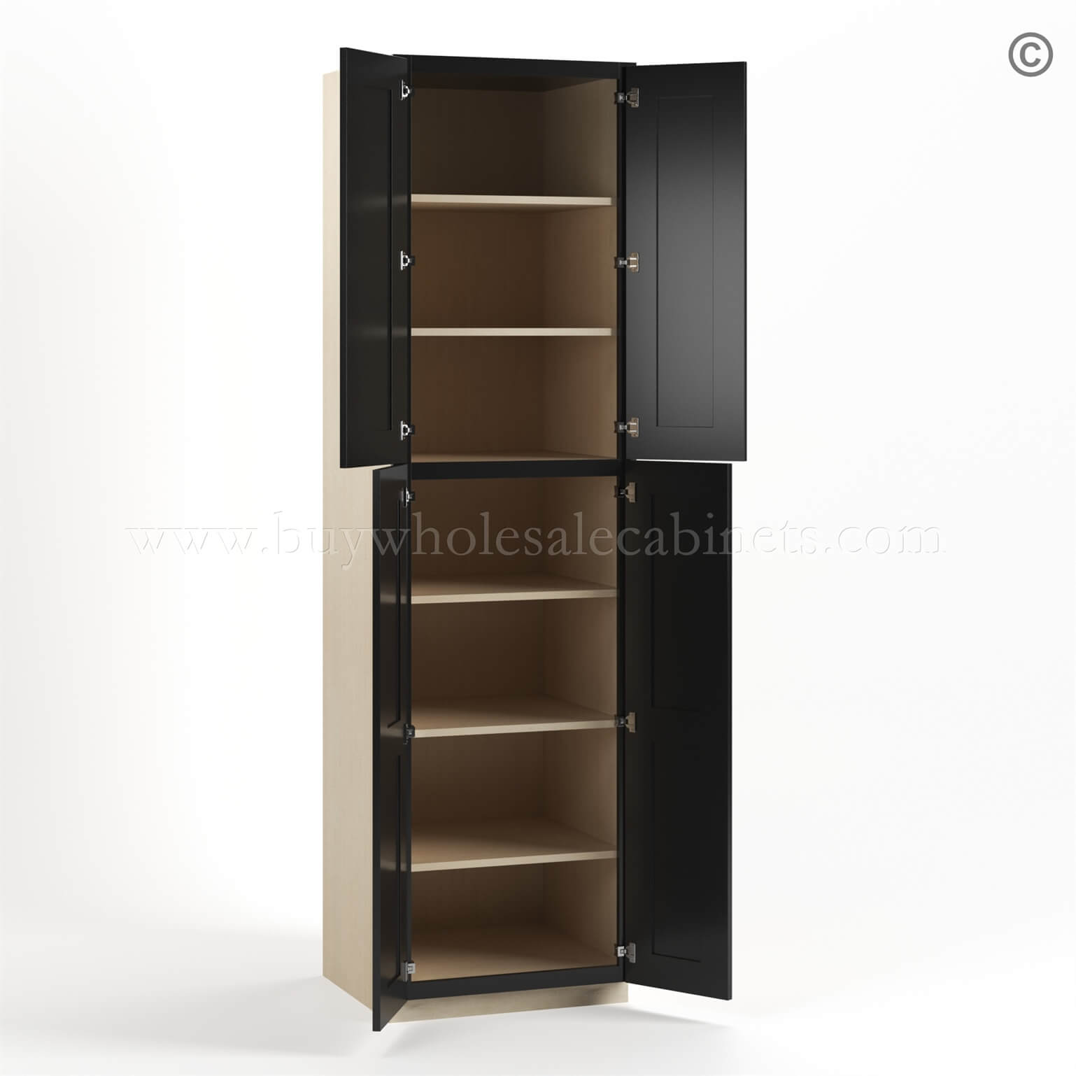 Our Black Shaker 24 W Utility Pantry Cabinet is 24″ Wide, 24″ Deep, and available in 3 heights. This Pantry Cabinet features 2 adjustable top shelves and 3 bottom shelves. This cabinet Black will fit perfectly in your kitchen or bathroom. The brilliant shade of shaker Black cabinet will make your rooms exude modernity and quality.