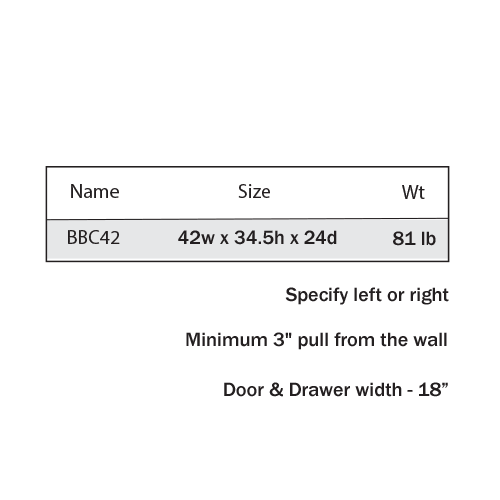 – 42″ wide cabinet