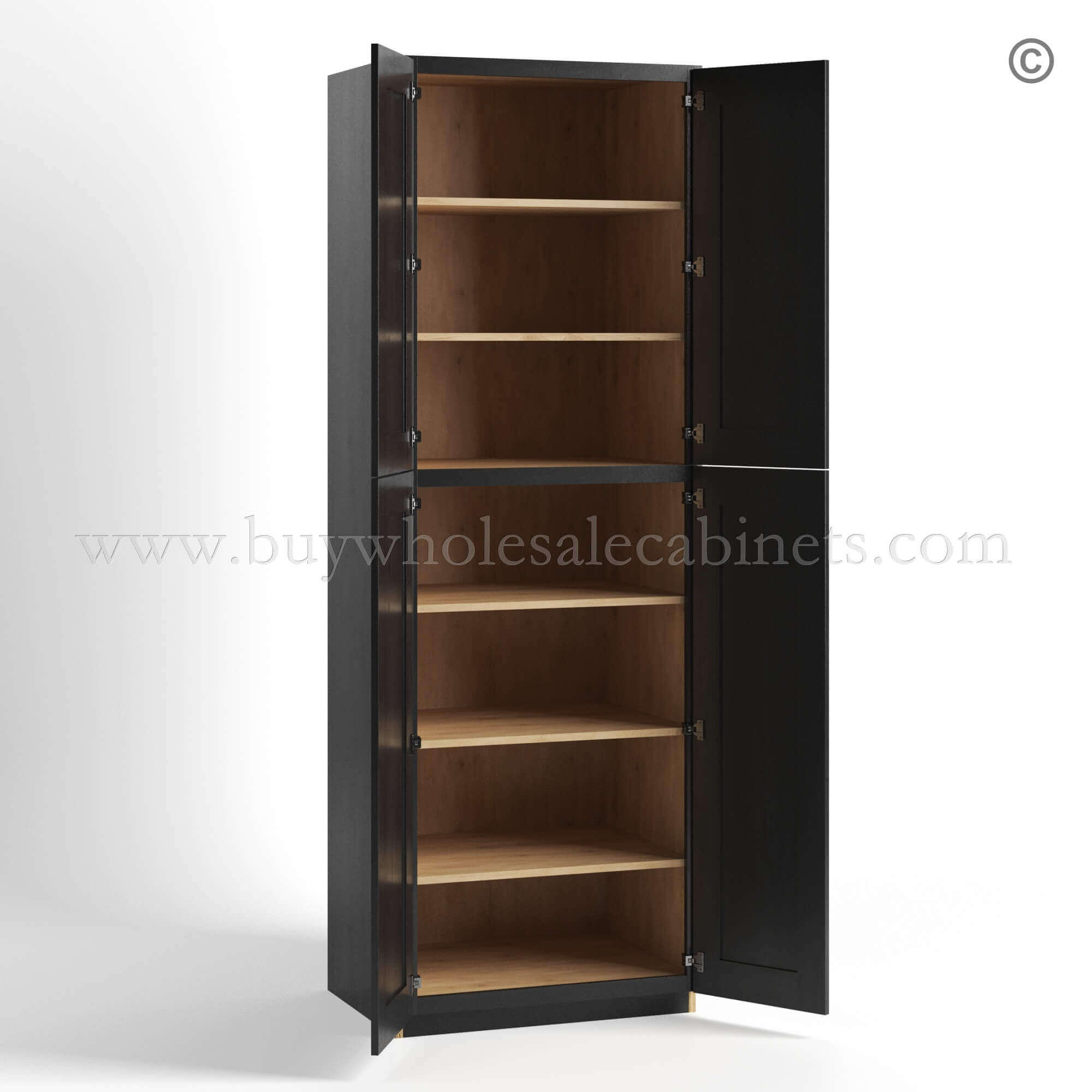 Our RTA Charcoal Black Shaker cabinets are finished with a high quality stain and the side panels are finished.