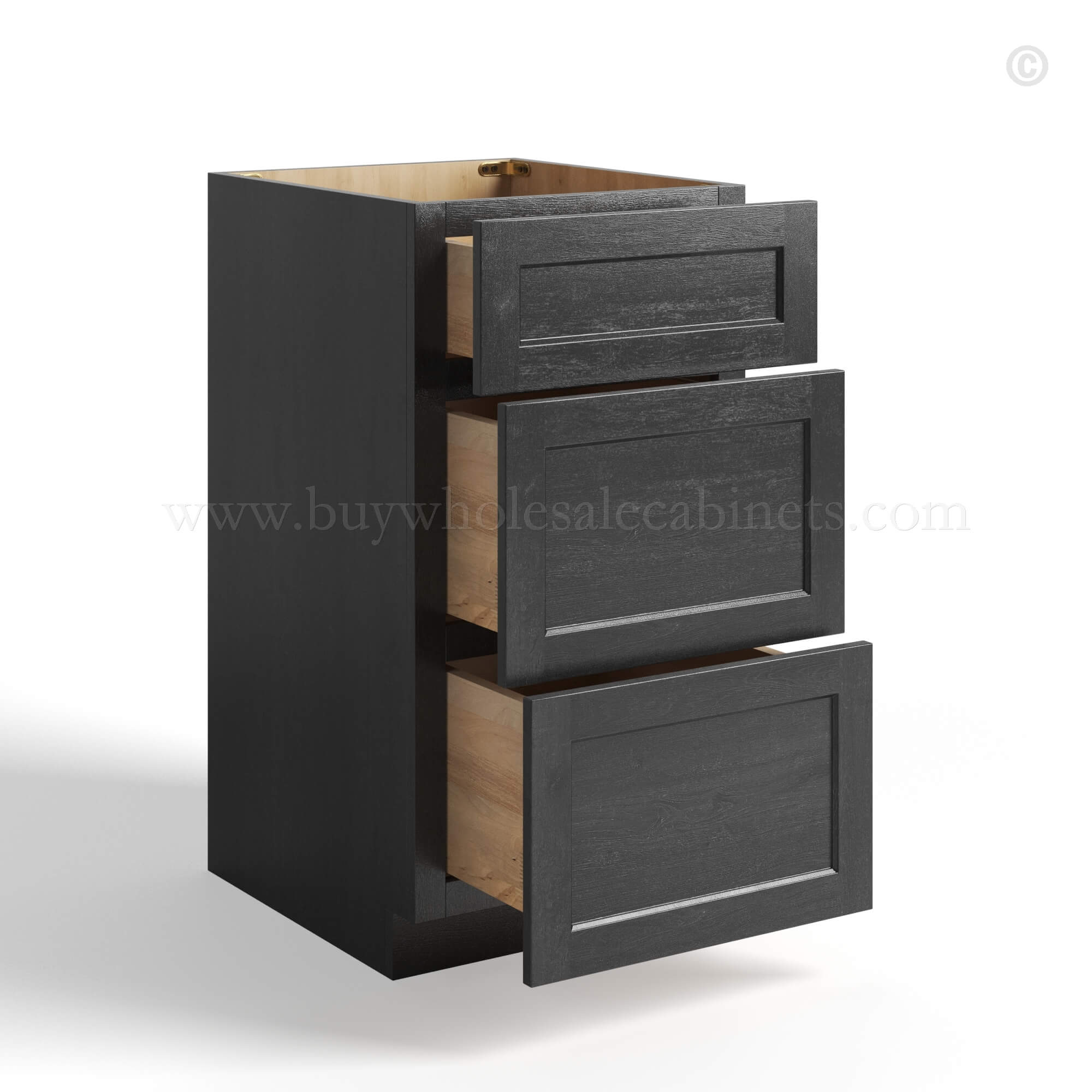 Charcoal Black Shaker Vanity Three Drawer Base Cabinet