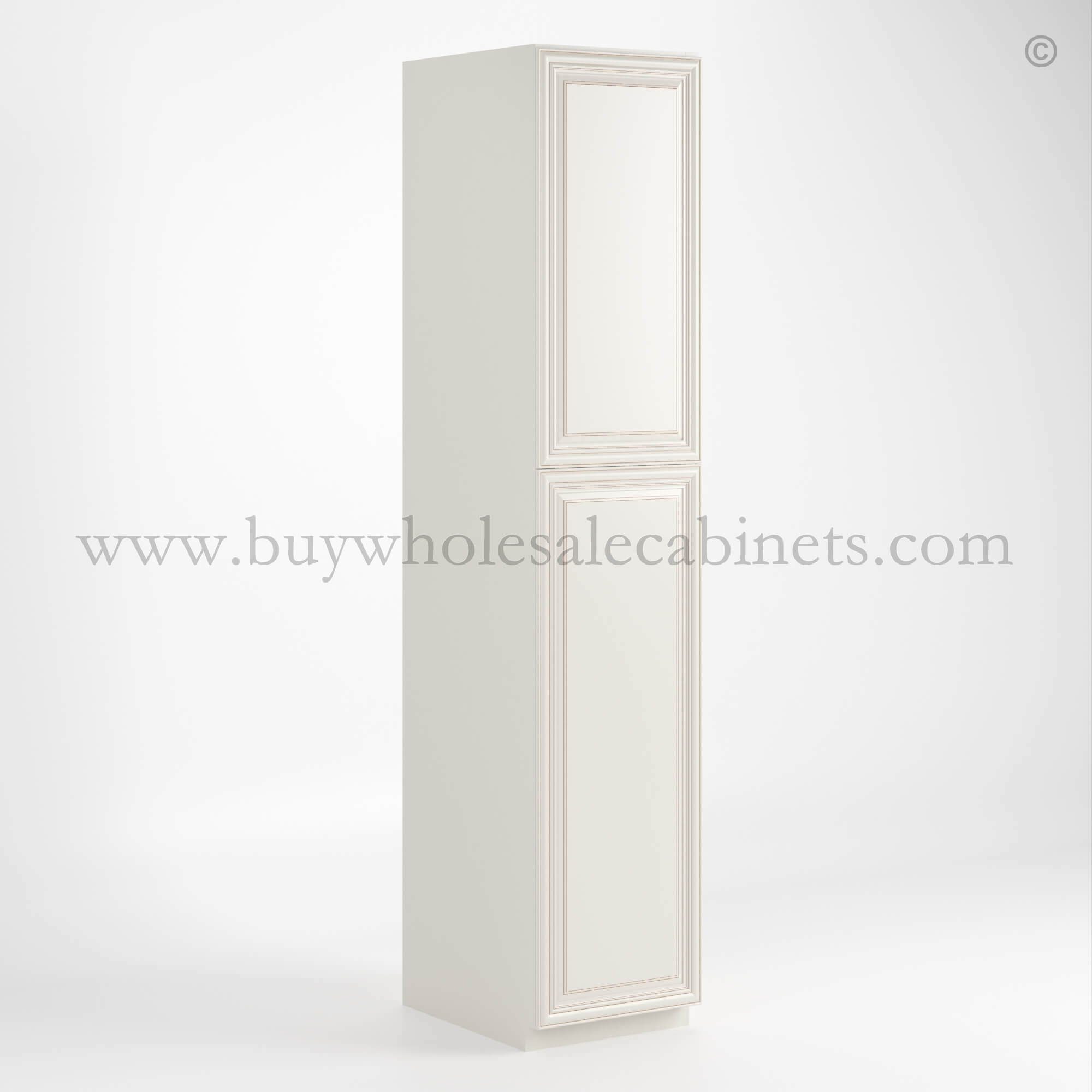 Our Charleston White Raised Panel 18″ W Utility Pantry Cabinet is available in 3 sizes.