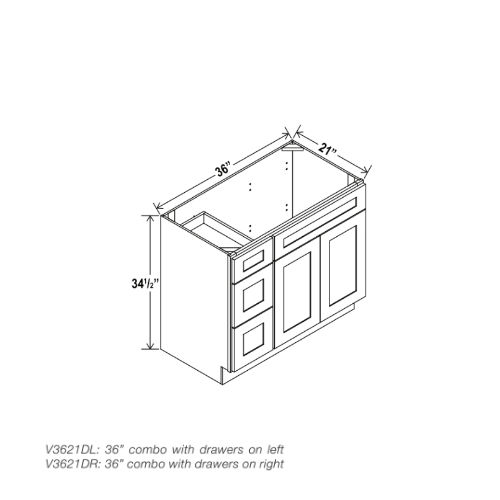 V3621DL: 36” combo with drawers on left • V3621DR: 36” combo with drawers on left right