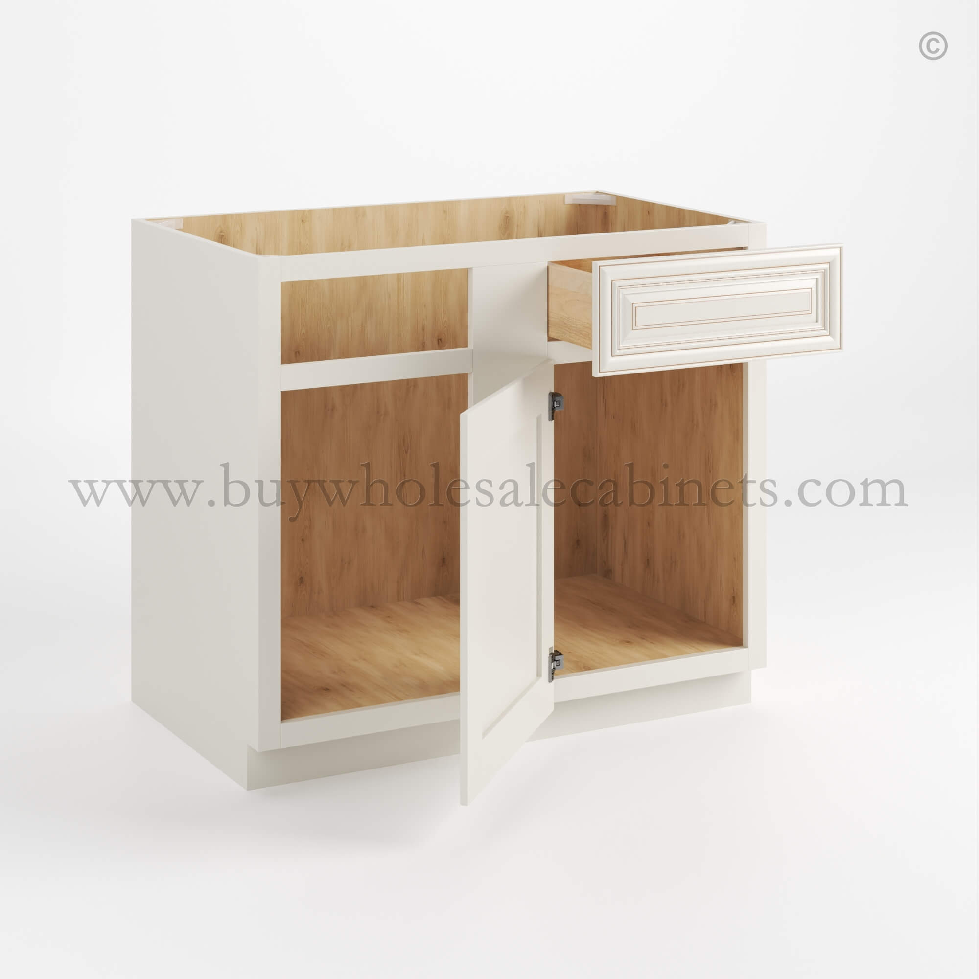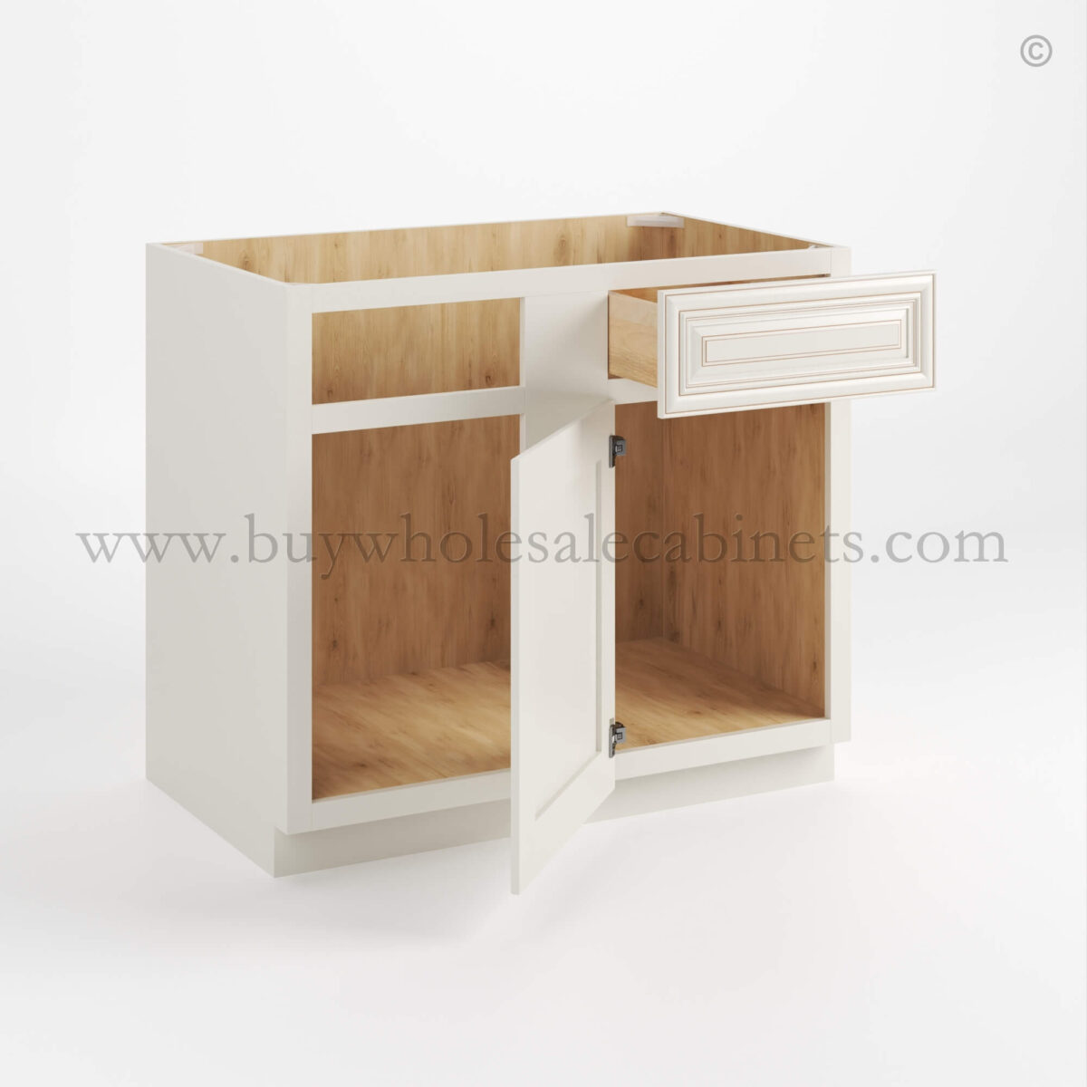 Our Charleston White Raised Panel Blind Corner Base Cabinet is available in 2 sizes.