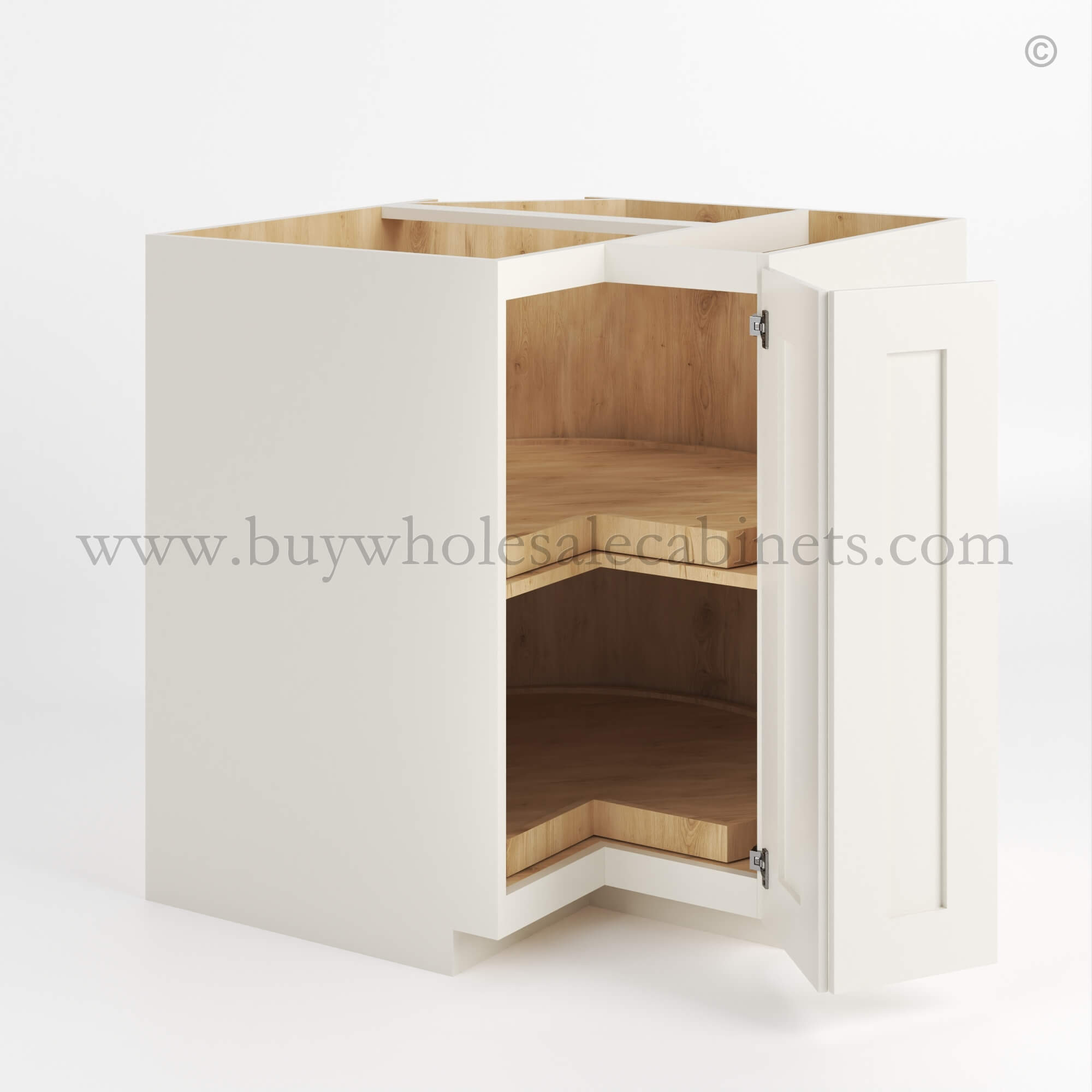 Buy Wholesale Cabinets Charleston White Raised Panel Lazy Susan Base Cabinet is available in 2 sizes and features 2 wooden trays