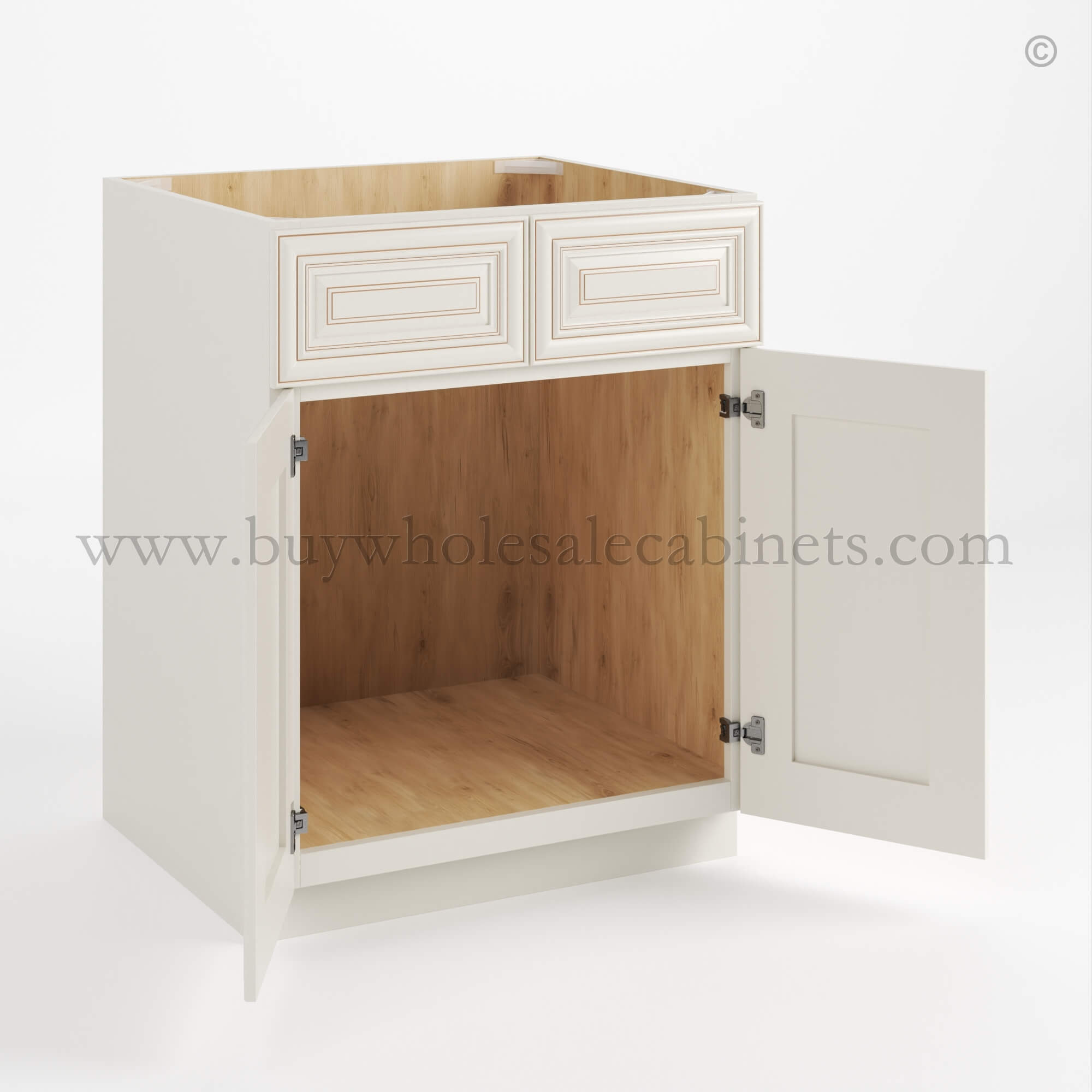 Buy Wholesale Cabinets Charleston White Raised Panel Sink Base With Double Doors and Drawers is available in 3 sizes.