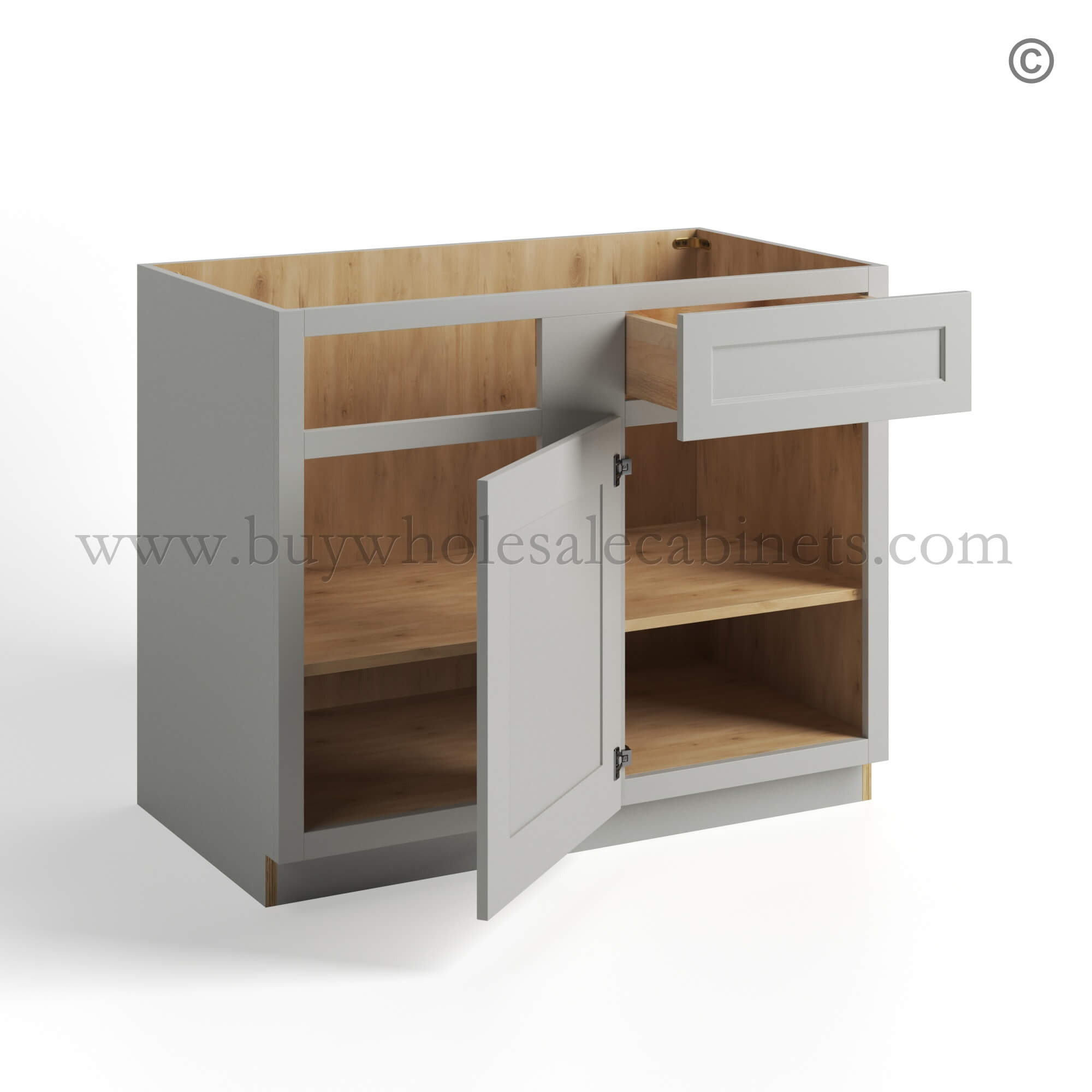 Our RTA Dorian Gray Shaker cabinets are finished with a high quality 7 layers of paint with a protective UV Coating and the side panels are also finished..