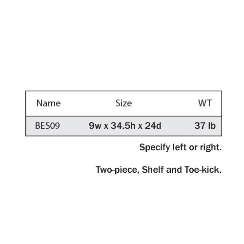 Box Construction: 1/2″ A-Grade Plywood with metal L bracket reinforcements for base cabinets