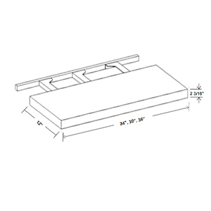 Size24″W x 2-1/16″H x 12″D, 30″W x 2-1/16″H x 12″D, 36″W x 2-1/16″H x 12″D