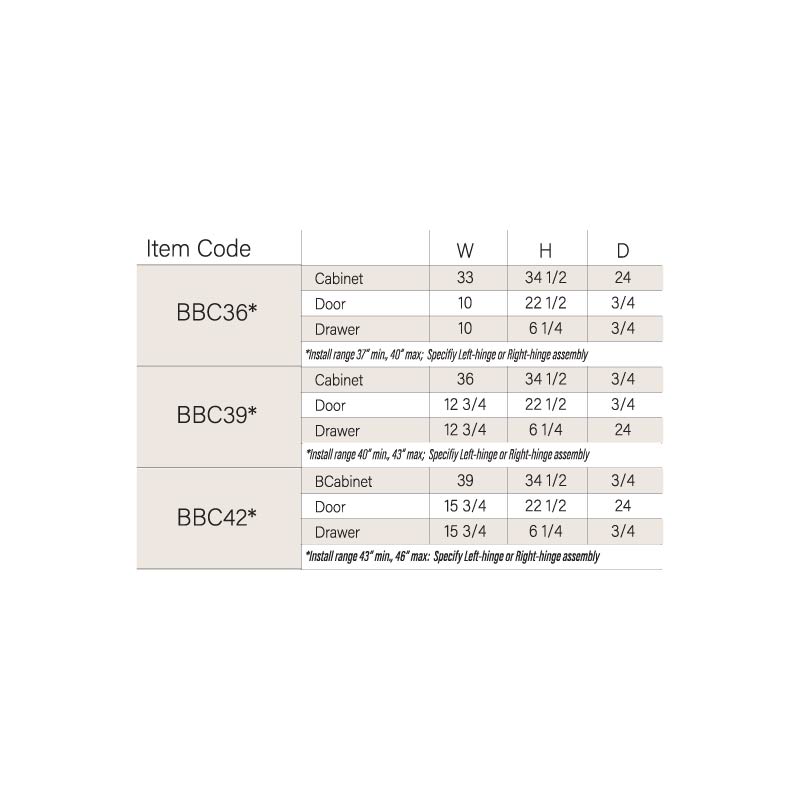 | Size | 33″W x 34-1/2″H x 24″D, 36″W x 34-1/2″H x 24″D, 39″W x 34-1/2″H x 24″D |
