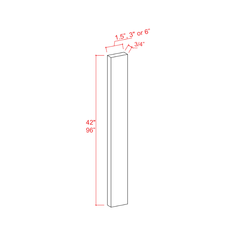 Size1.5″W x 96″H x 3/4″D, 3″W x 96″H x 3/4″D, 6″W x 96″H x 3/4″D