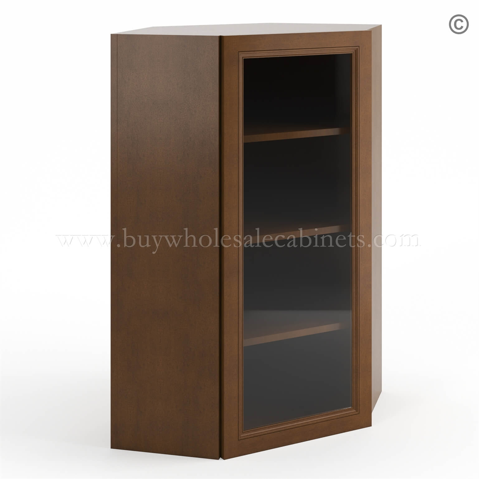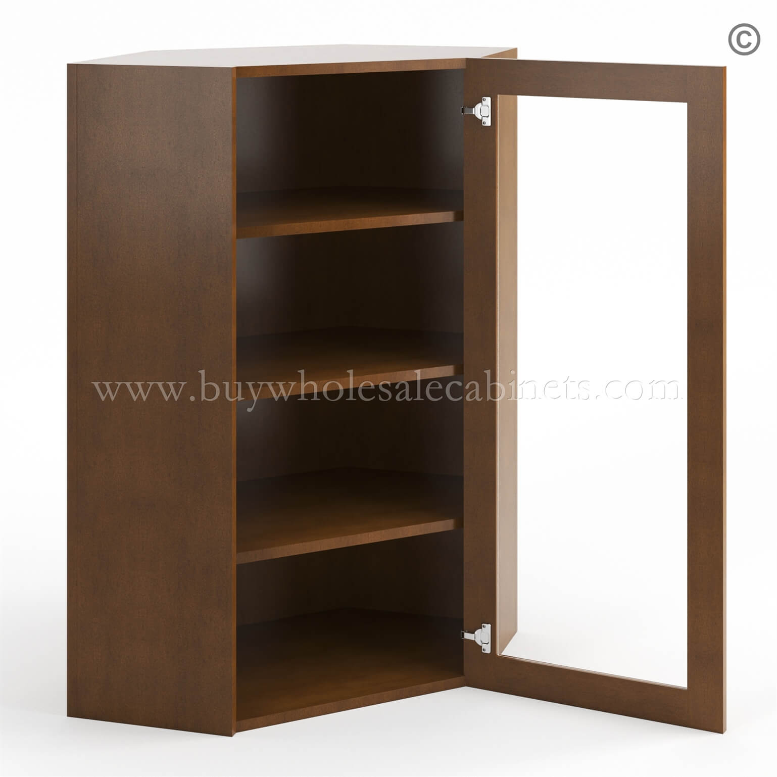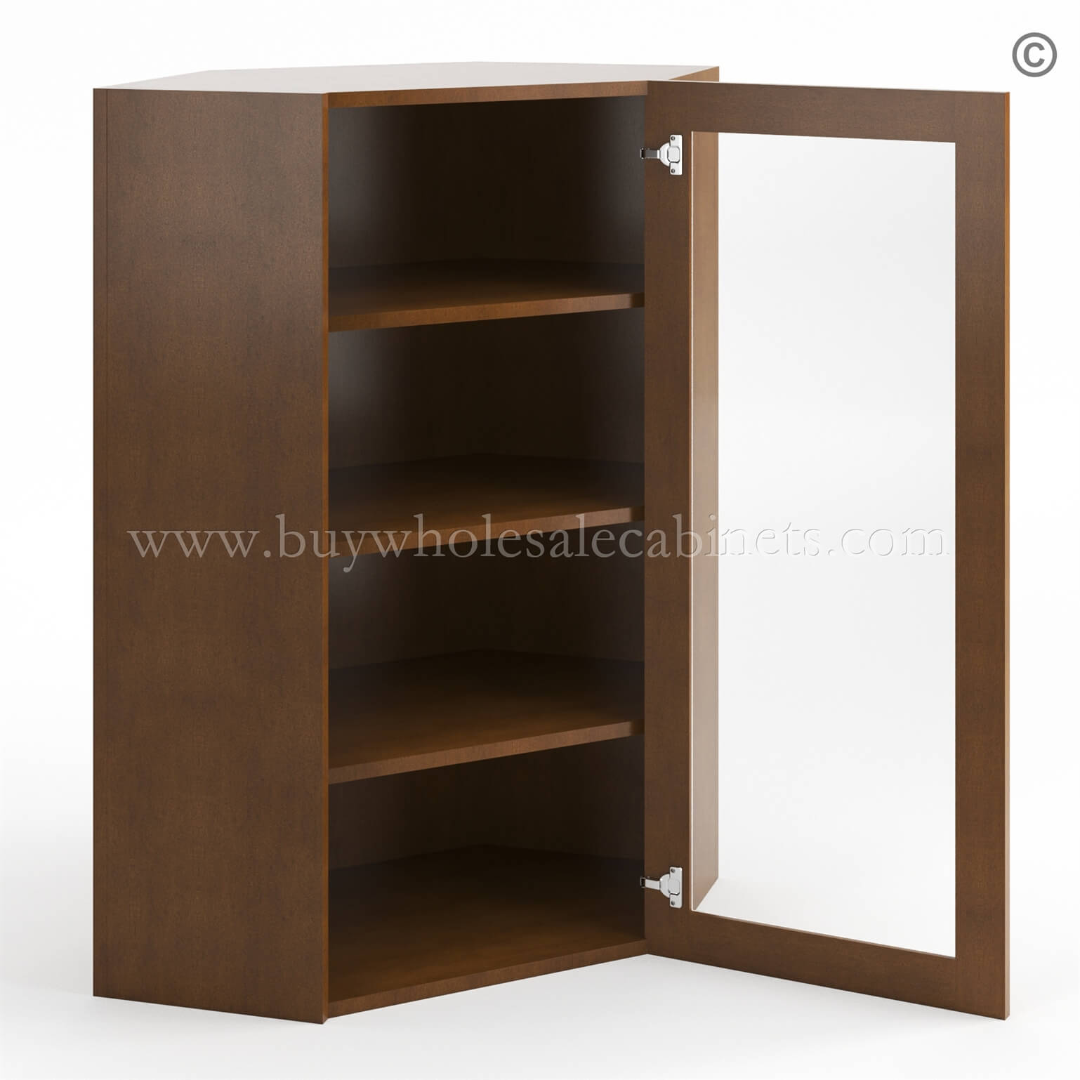 Frameless Classic Chestnut Wall Diagonal Mullion Door – 1 Door 3 Shelves – No Glass