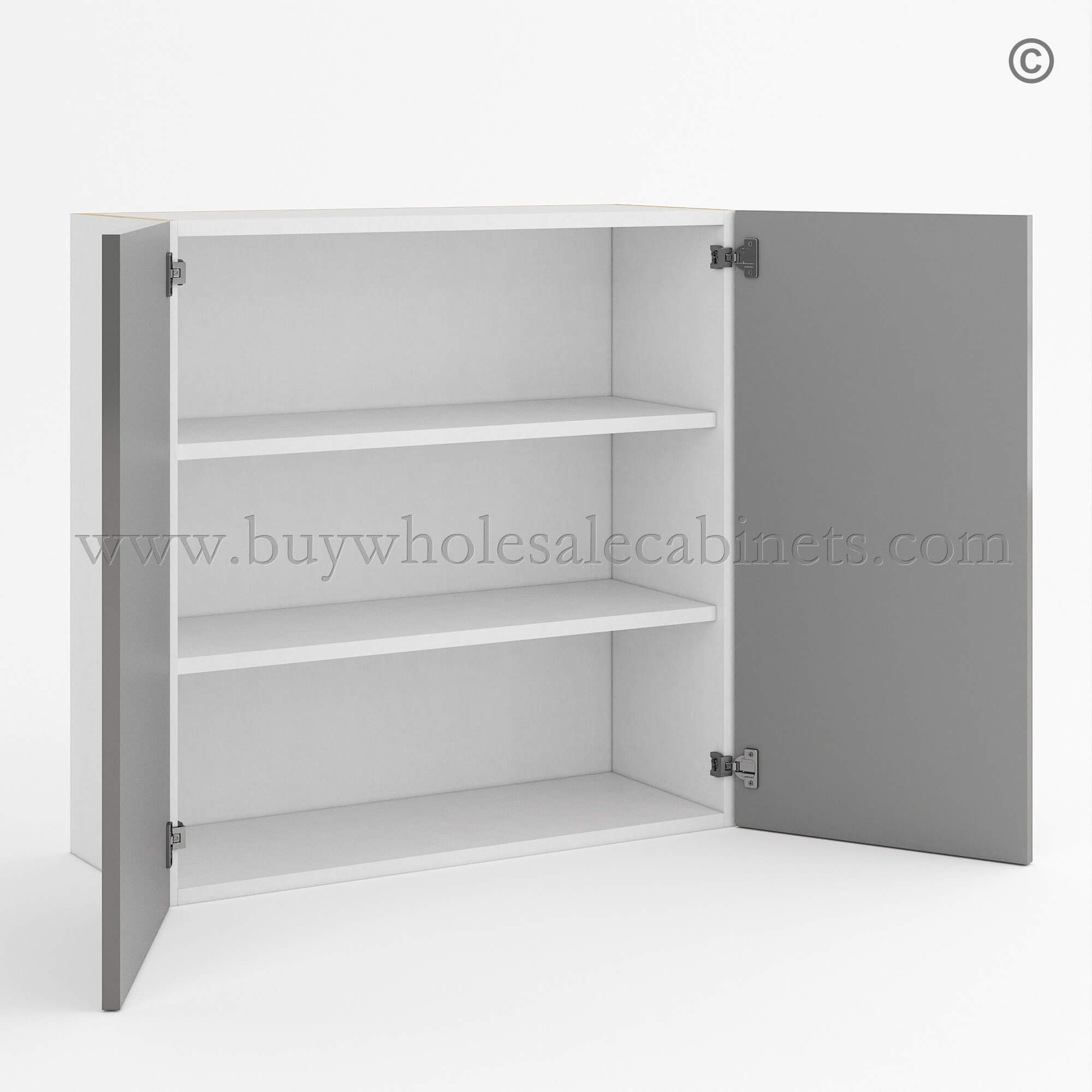 This RTA cabinet frameless gray 30H double door wall will complete your kitchen! Design your perfect kitchen and check out our selection of Frameless Gloss Gray Cabinets.
