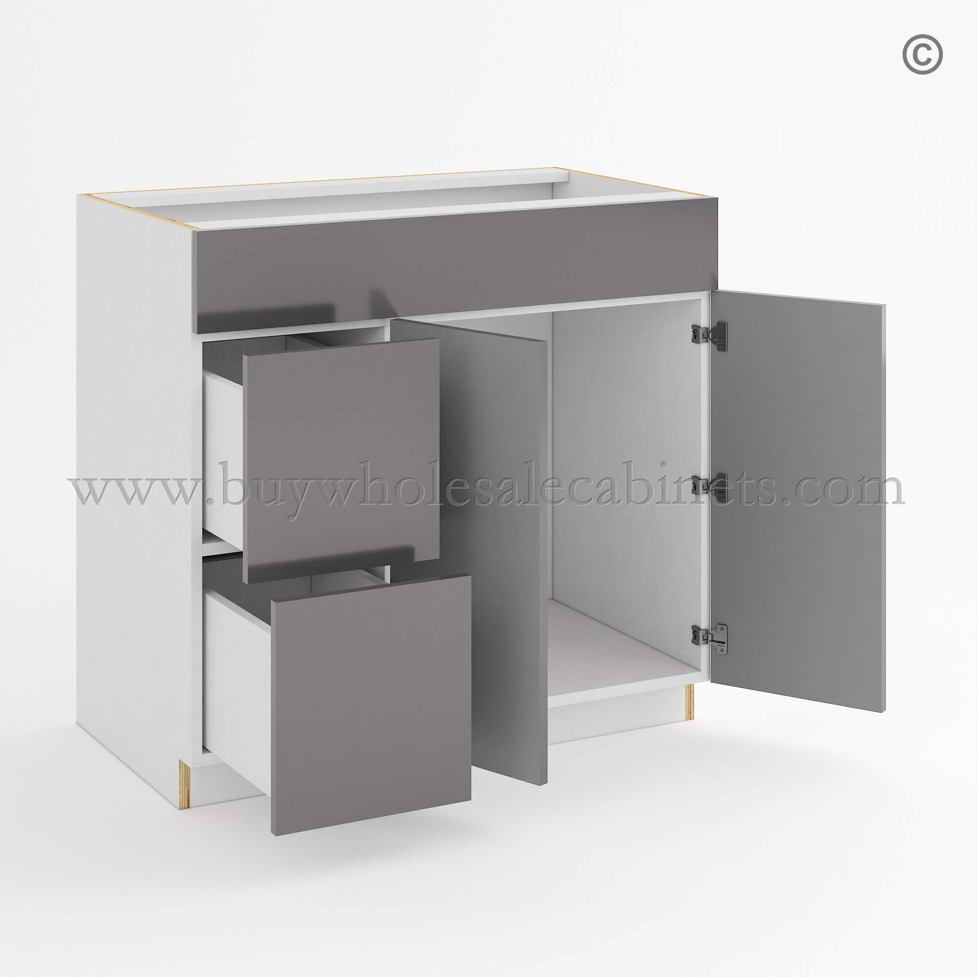 Order the Frameless Gloss Gray Double Drawer Single Dummy Drawer Vanity Combo Base Cabinet 36W and furnish the kitchen with the best selection of RTA cabinets!