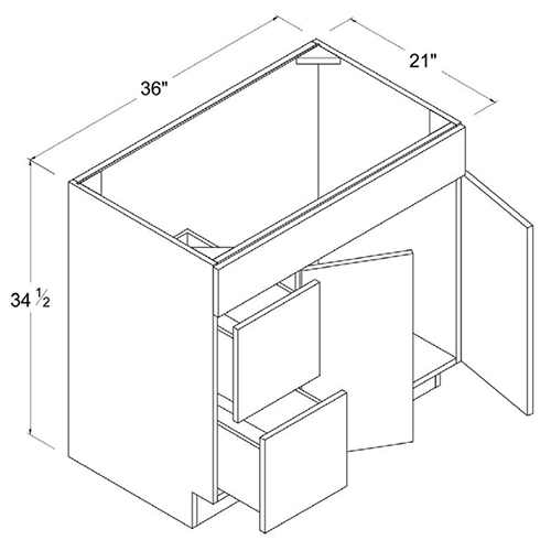 This RTA cabinet frameless gray vanity combo base 36w will complete your kitchen! Design your perfect kitchen and check out our selection of Frameless Gloss Gray Cabinets.