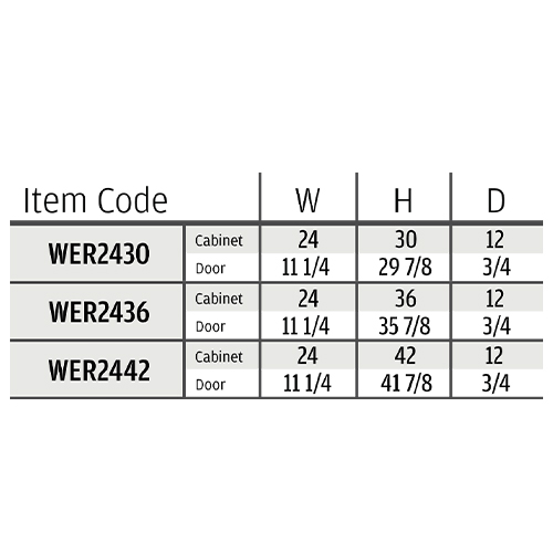 | Size | 24″W x 30″H x 12″D, 24″W x 36″H x 12″D, 24″W x 42″H x 12″D |
