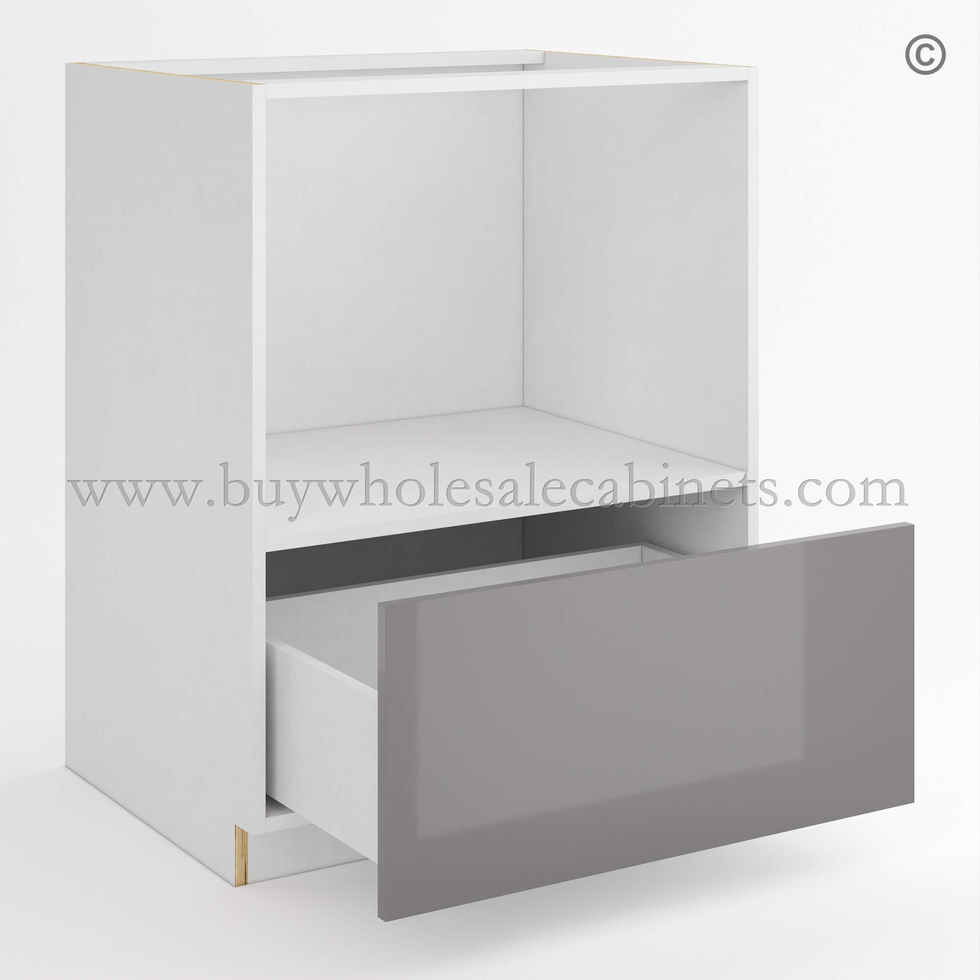 Order the Frameless Gloss Gray Microwave Base Cabinet and furnish the kitchen with the best selection of RTA cabinets!