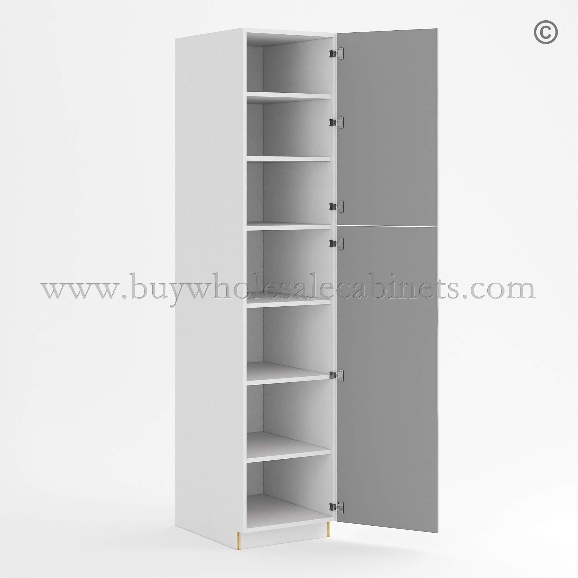 This RTA cabinet frameless gray tall pantry will complete your kitchen! Design your perfect kitchen and check out our selection of Frameless Gloss Gray Cabinets.