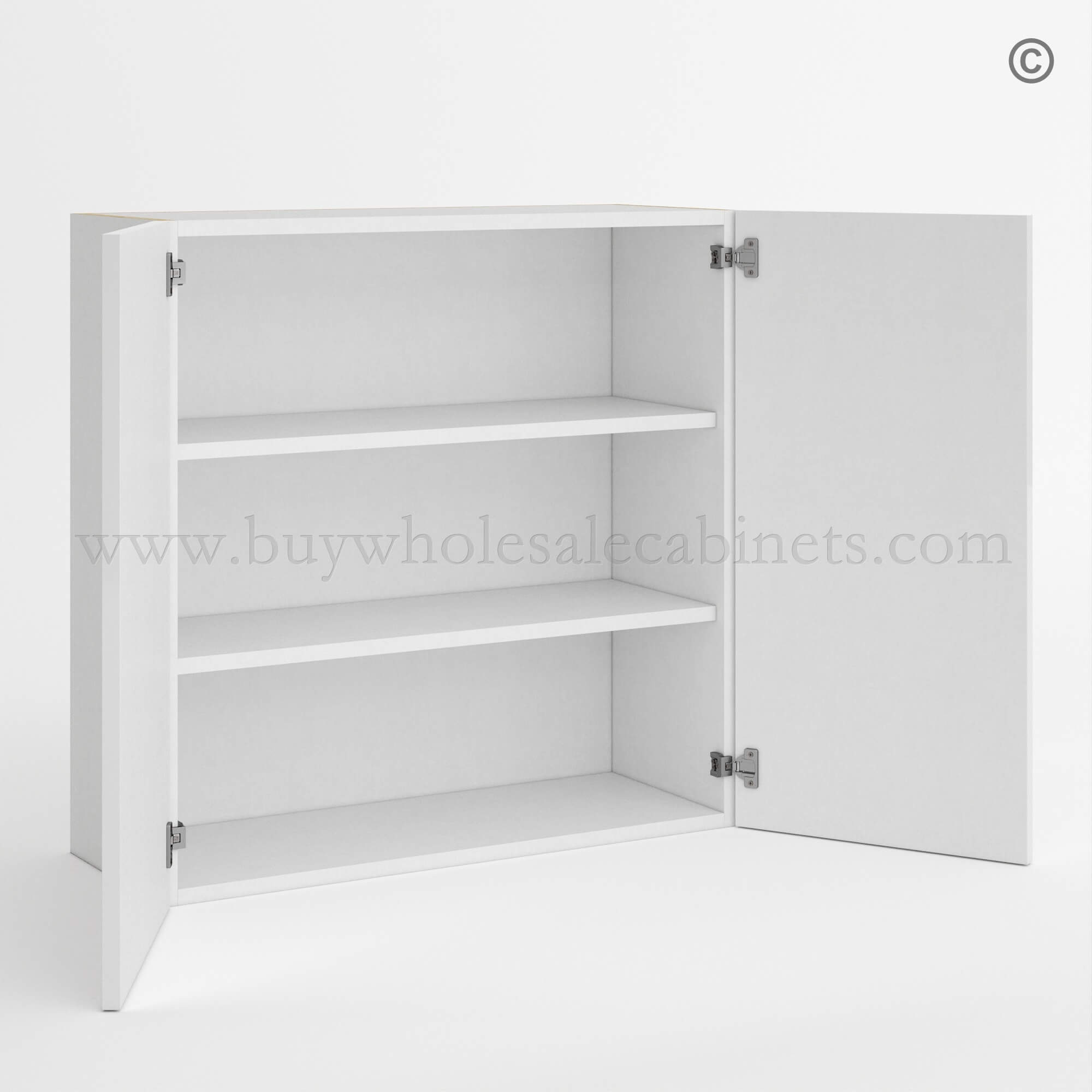Frameless Gloss White 30H Double Door Wall Cabinet
