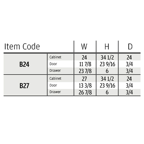 | Size | 24″W x 34.5″H x 24″D, 27″W x 34.5″H x 24″D |