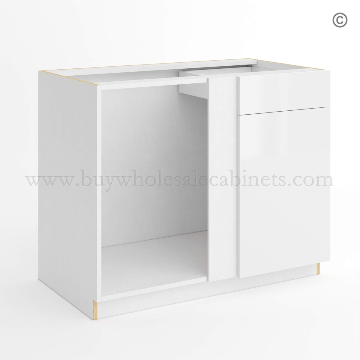 This RTA cabinet frameless white blind corner base will complete your kitchen! Design your perfect kitchen and check out our selection of Frameless Gloss White Cabinets.