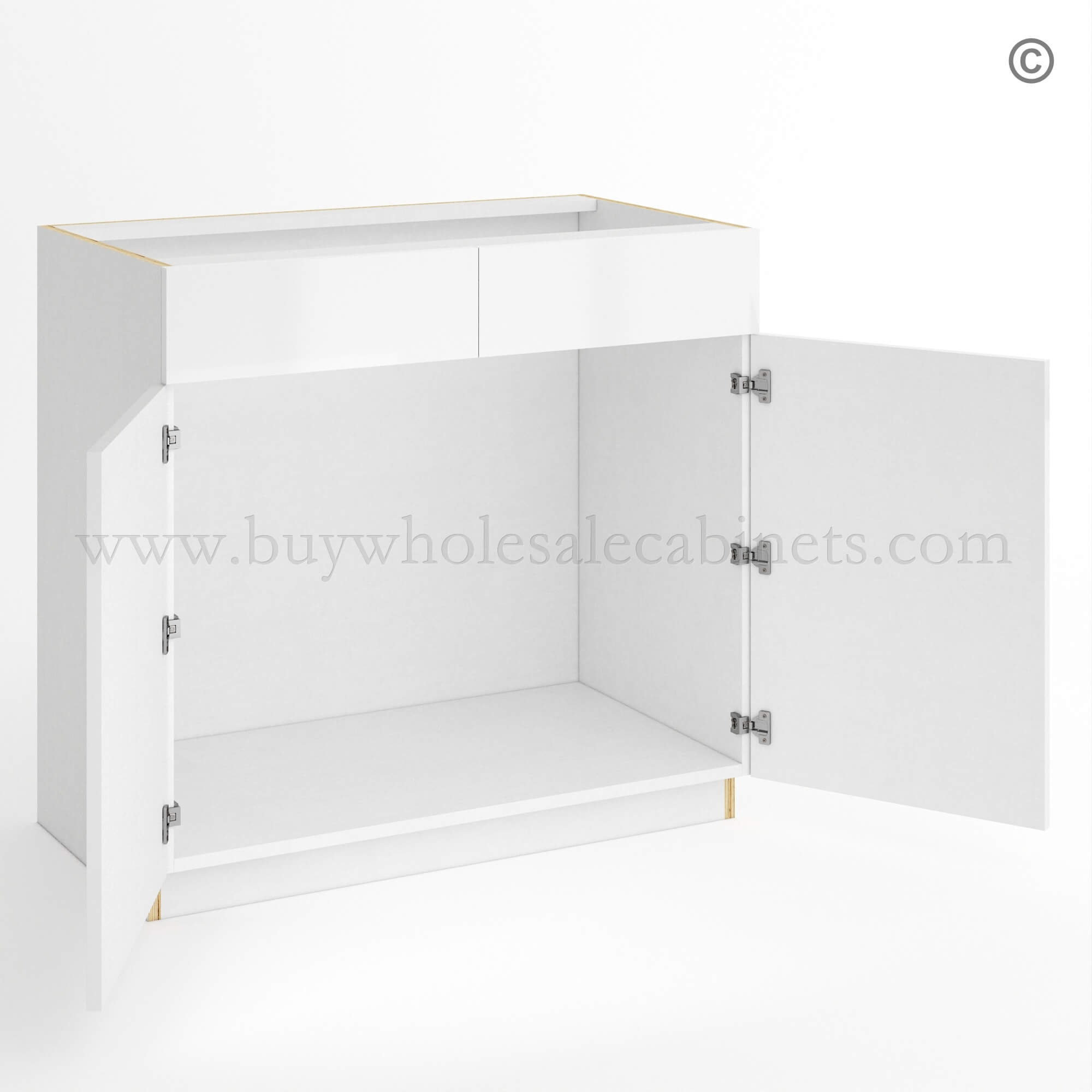 Order the Frameless Gloss White Double Door Double Dummy Drawer Vanity Sink Base and furnish the kitchen with the best selection of RTA cabinets!