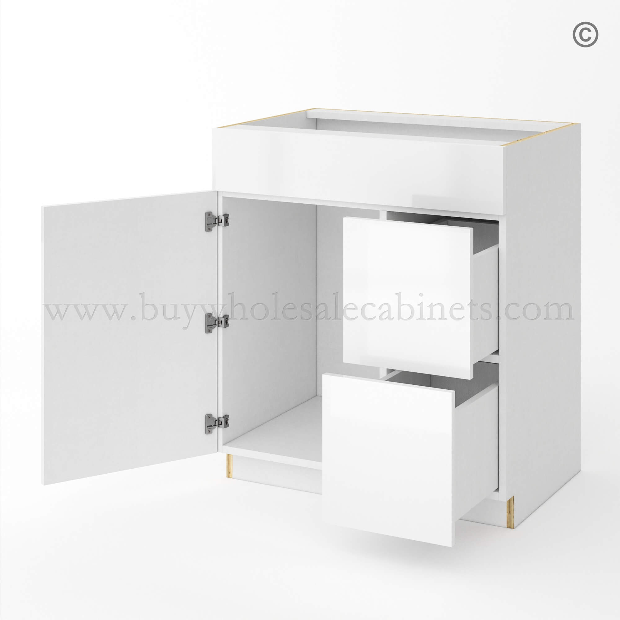 Order the Frameless Gloss White Double Drawer Single Dummy Drawer Vanity Combo Base Cabinet 30W and furnish the kitchen with the best selection of RTA cabinets!