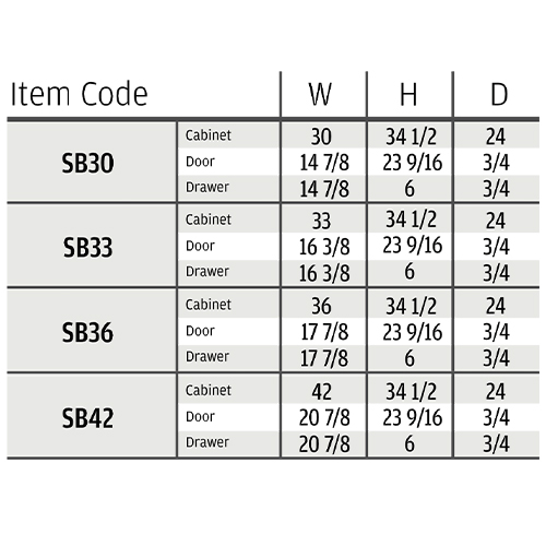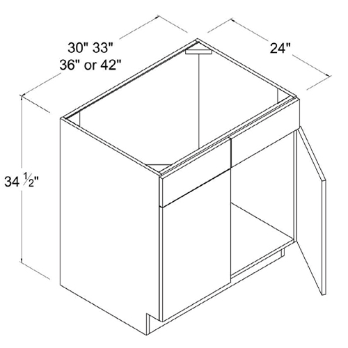 Size30″W x 34.5″H x 24″D, 33″W x 34.5″H x 24″D, 36″W x 34.5″H x 24″D, 42″W x 34.5″H x 24″D