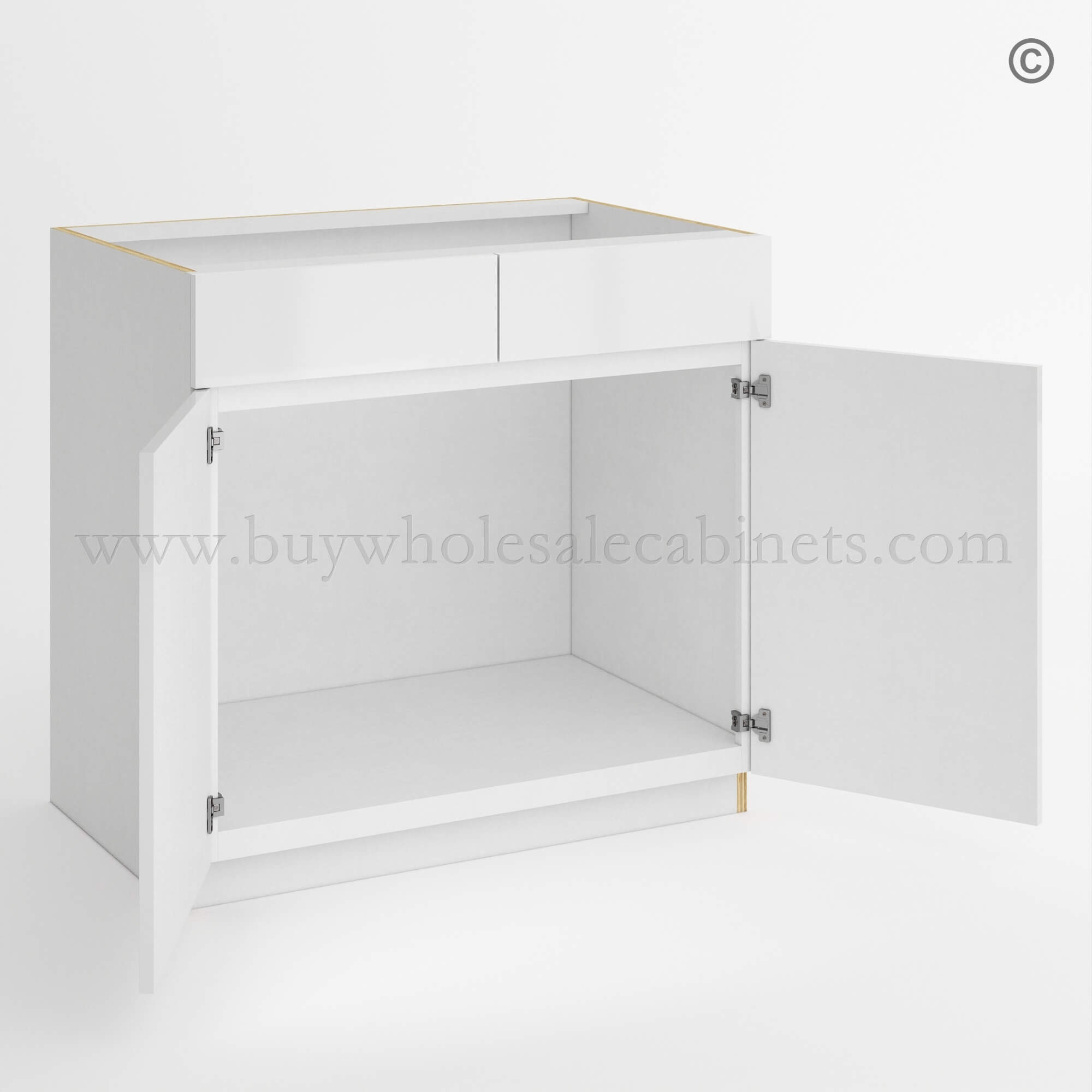 Order the Frameless Gloss White Sink Base With Double Doors and Double Dummy Drawer and furnish the kitchen with the best selection of RTA cabinets!