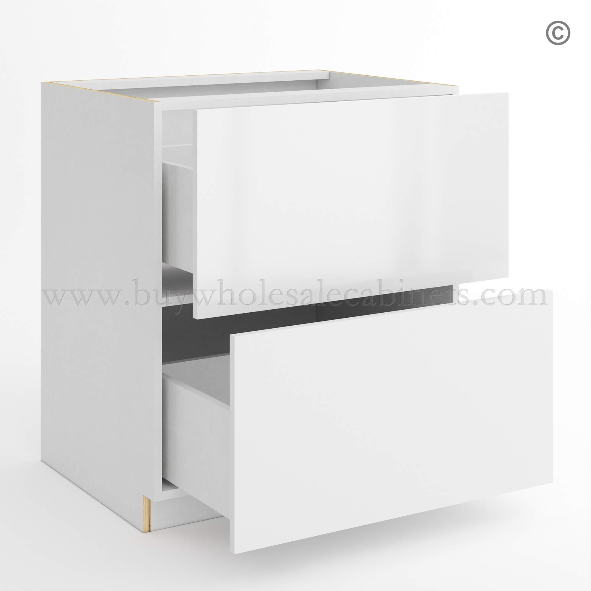 Order the Frameless Gloss White Two Drawer Base Cabinet and furnish the kitchen with the best selection of RTA cabinets!