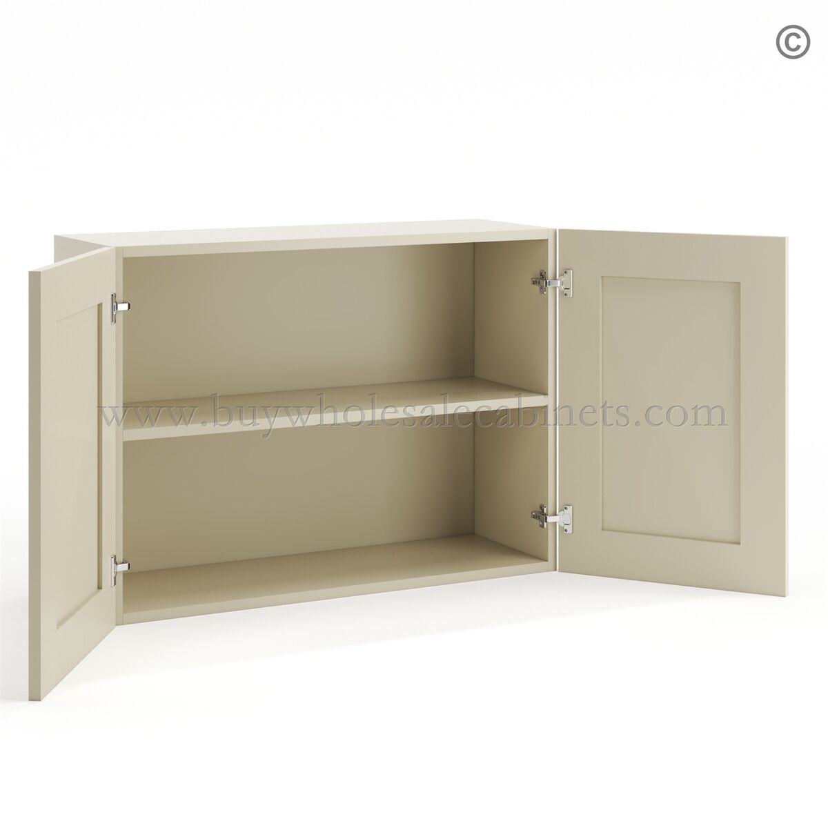 Frameless Ivory White 24″ Deep Wall Cabinet – 2 Doors 1 Shelf