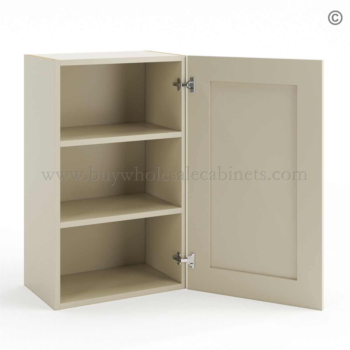 Frameless Ivory White 30″ Tall Deep Wall Cabinet – 1 Door 2 Shelves