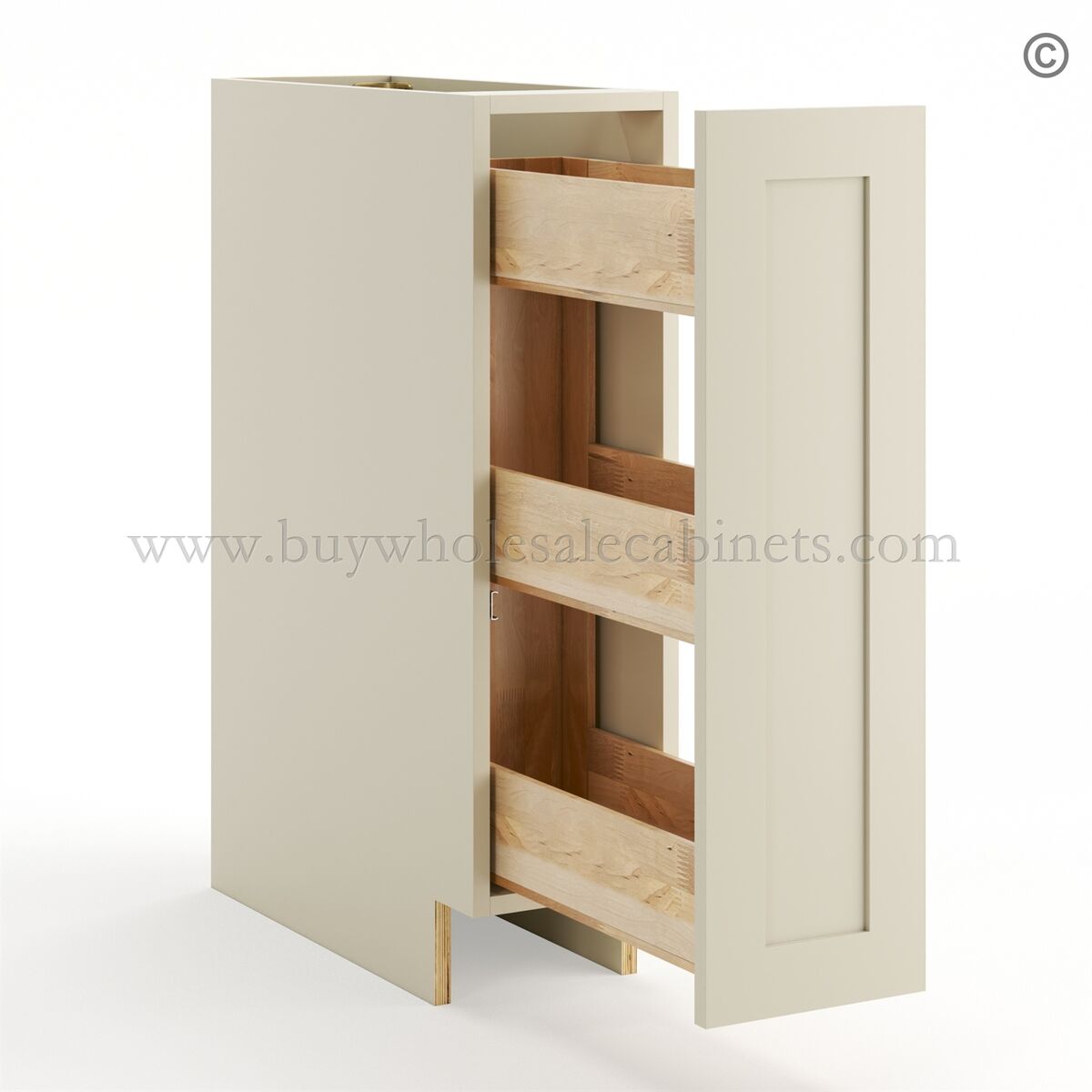 Frameless Ivory White Base Spice Rack Pull Out – 1 Full Height Door