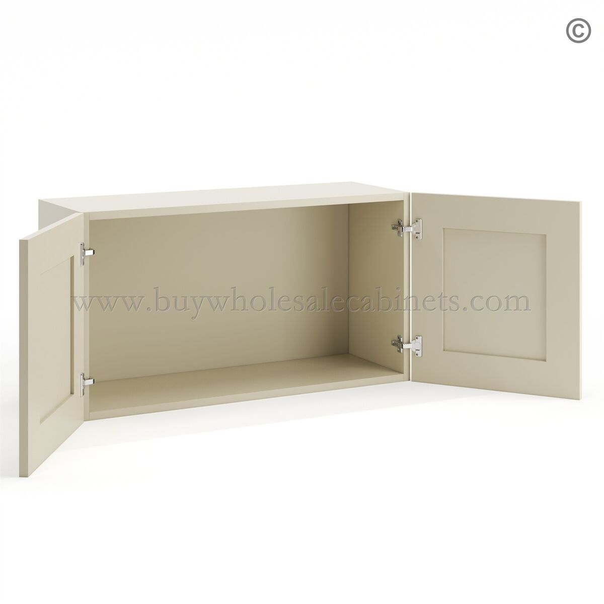 Frameless Ivory White Deep Wall Cabinet – 2 Doors No Shelf – 12″D, 36″W