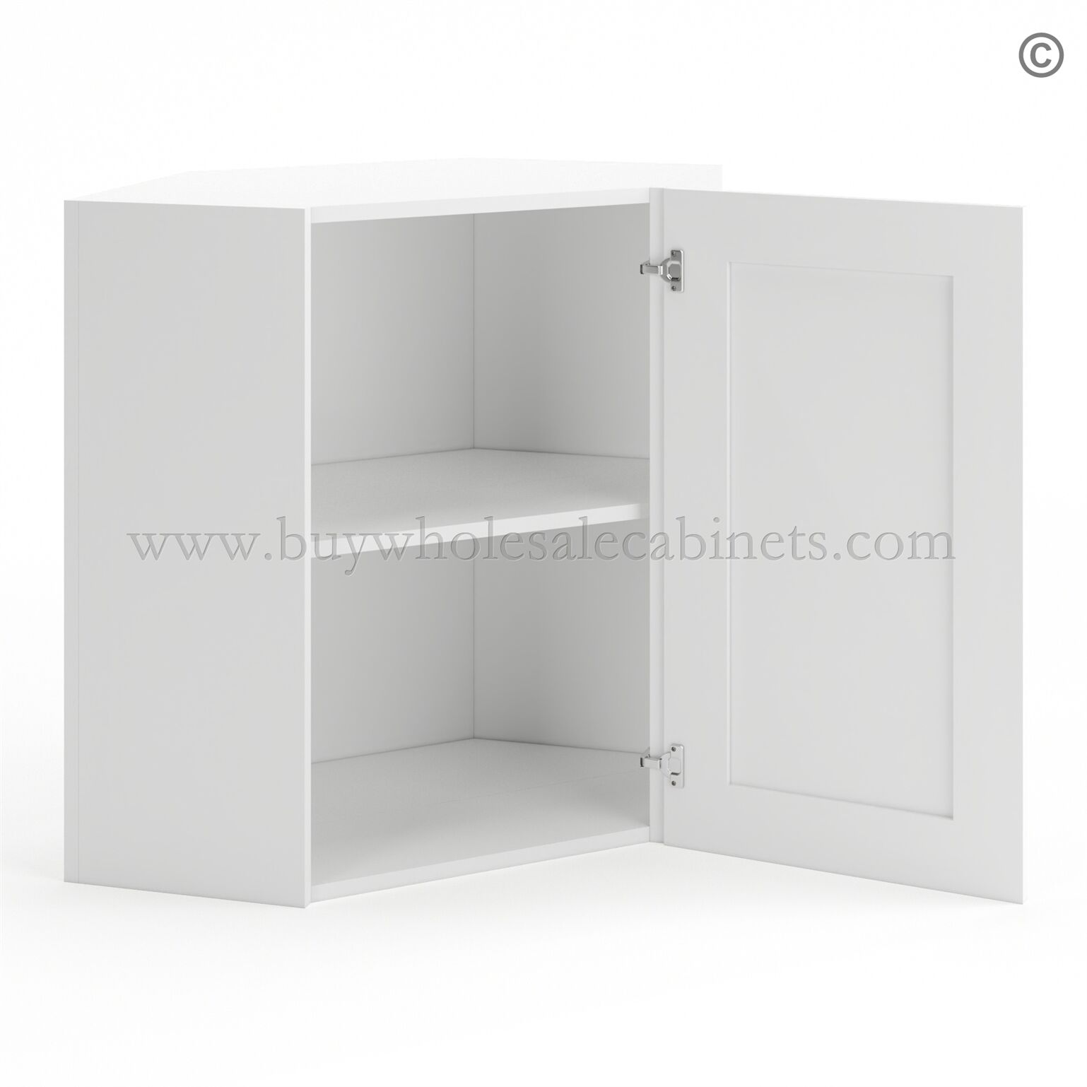 Frameless Modern White Shaker 24″ Wide Wall Diagonal Door – 1 Door, 1 Shelf