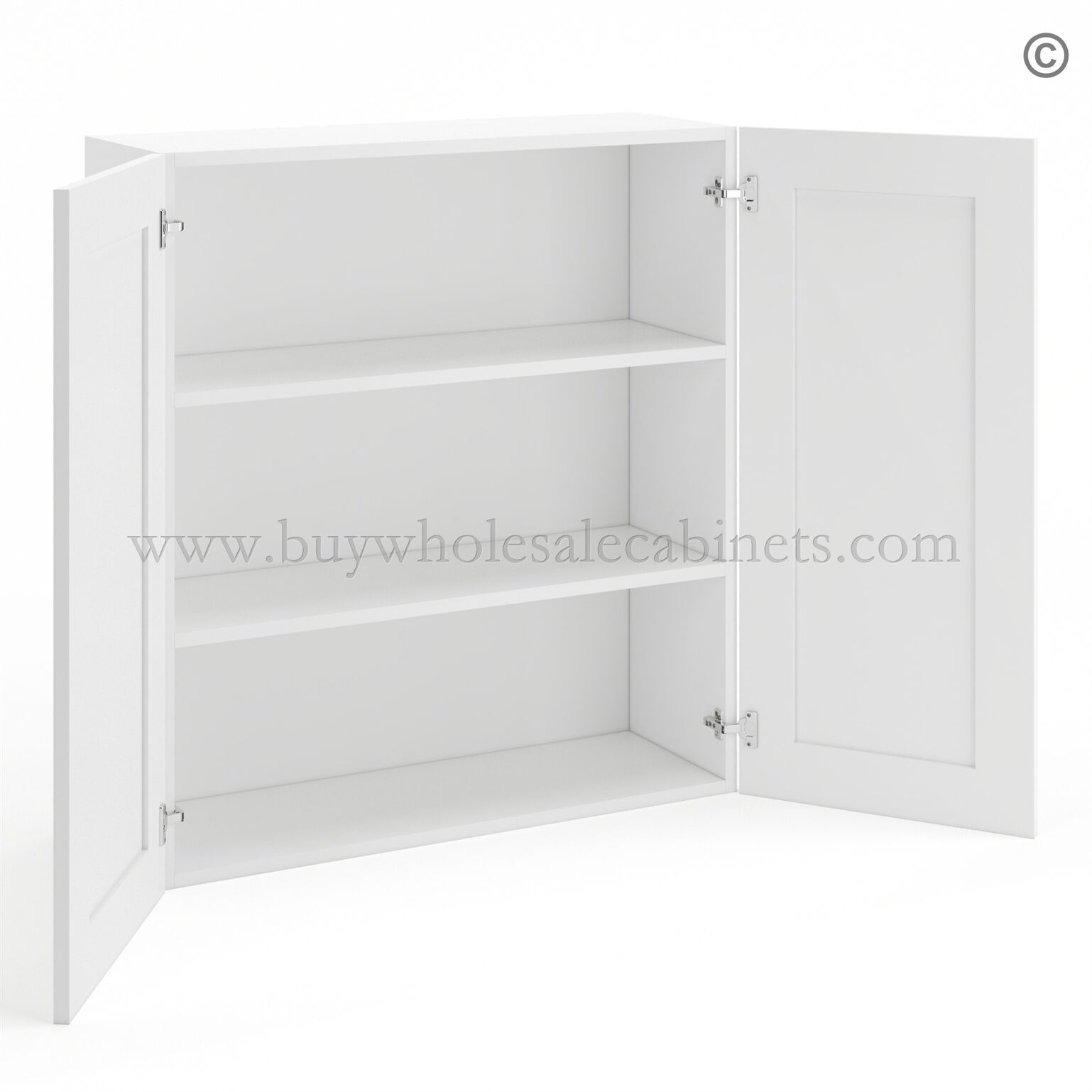 Frameless Modern White Shaker 36″ Tall Wall Cabinet – 2 Doors 2 Shelves