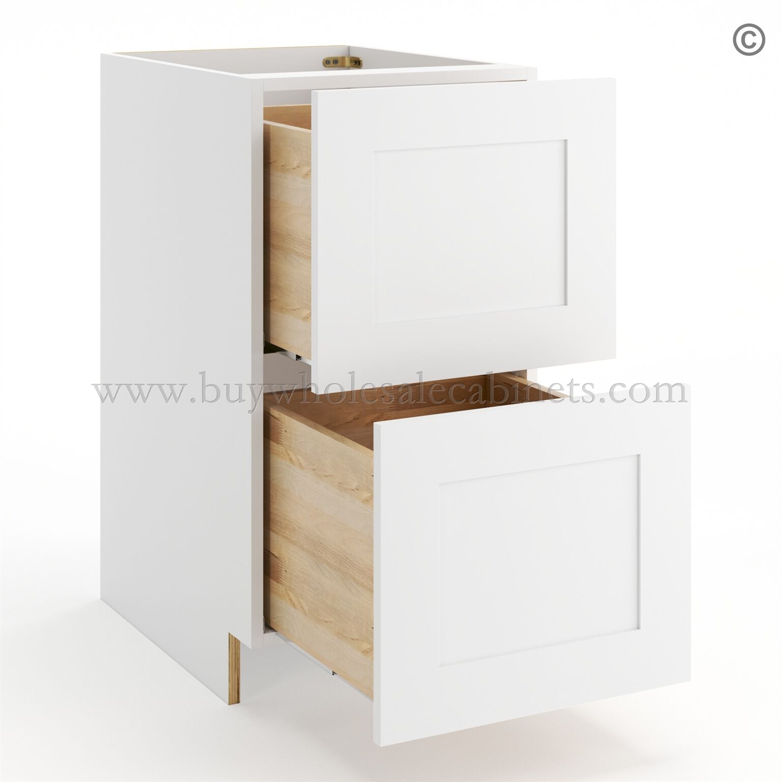 Frameless Modern White Shaker Base Cabinet – 2 Drawer