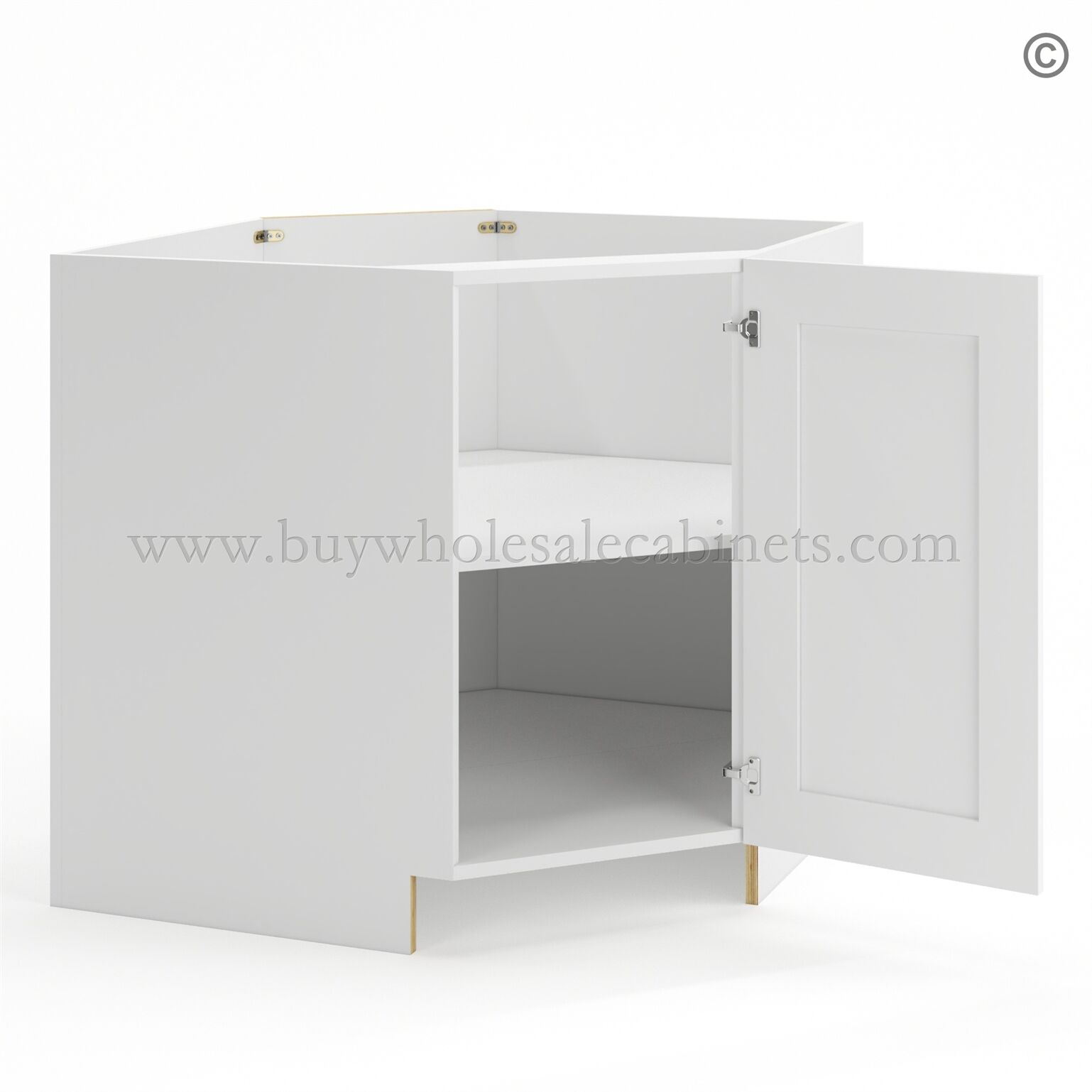 Frameless Modern White Shaker Base Diagonal Cabinet 1 Door (Excludes Metal Lazy Susan Insert)