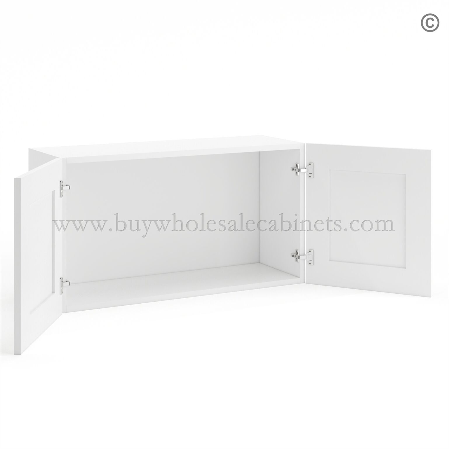 Frameless Modern White Shaker Deep Wall Cabinet – 2 Doors No Shelf – 12″D, 24″W