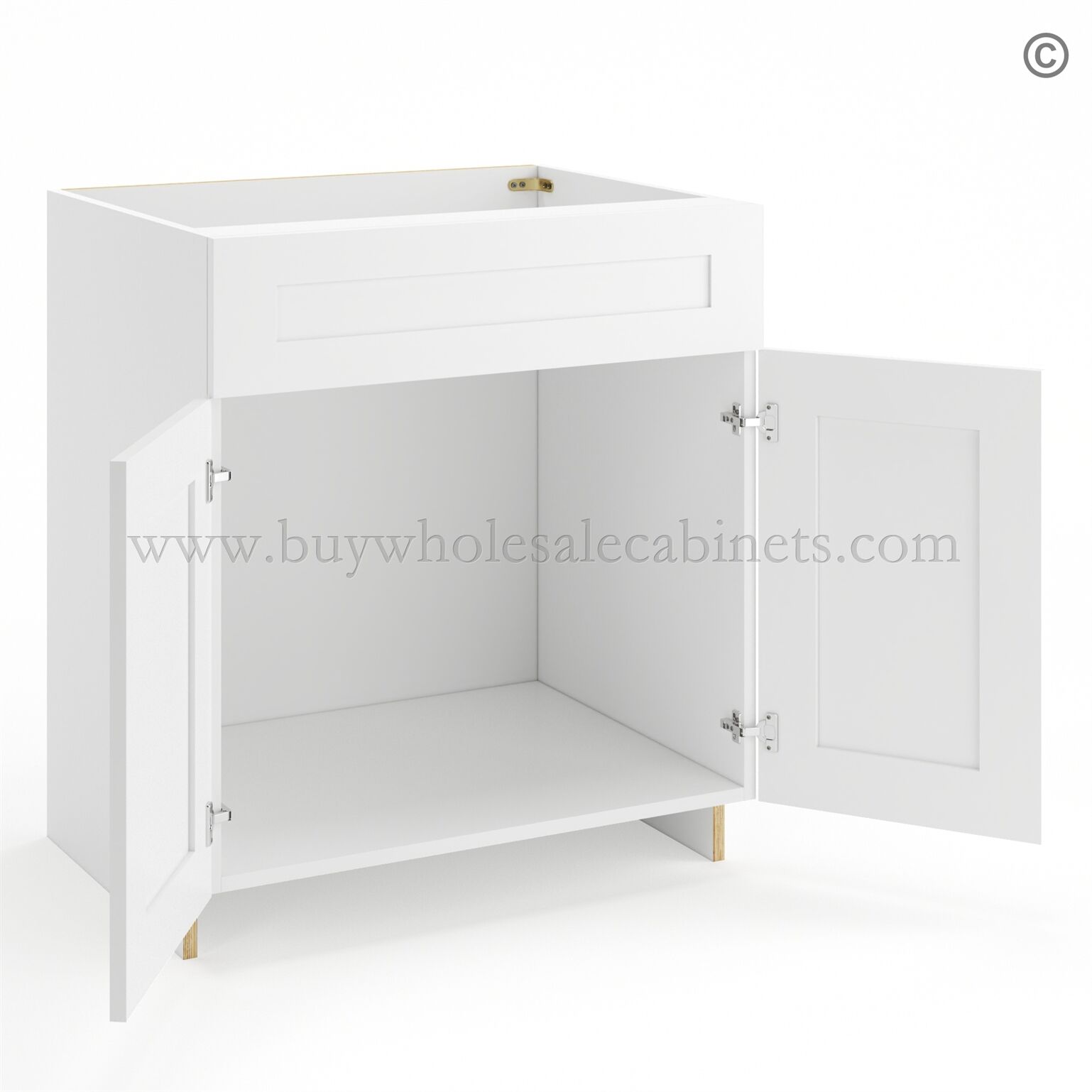 Frameless Modern White Shaker Sink Base Cabinet – 2 Doors & 1 False Drawer