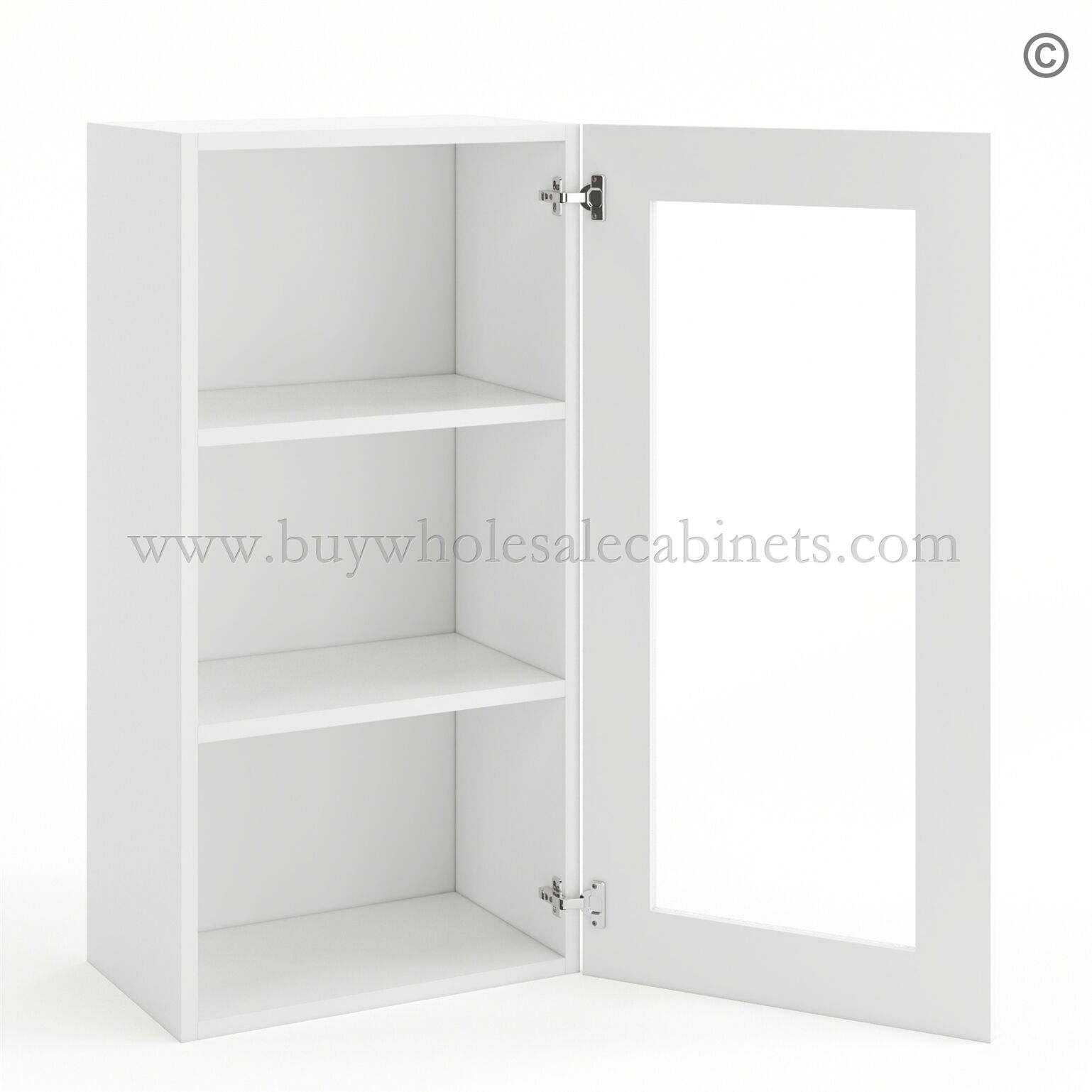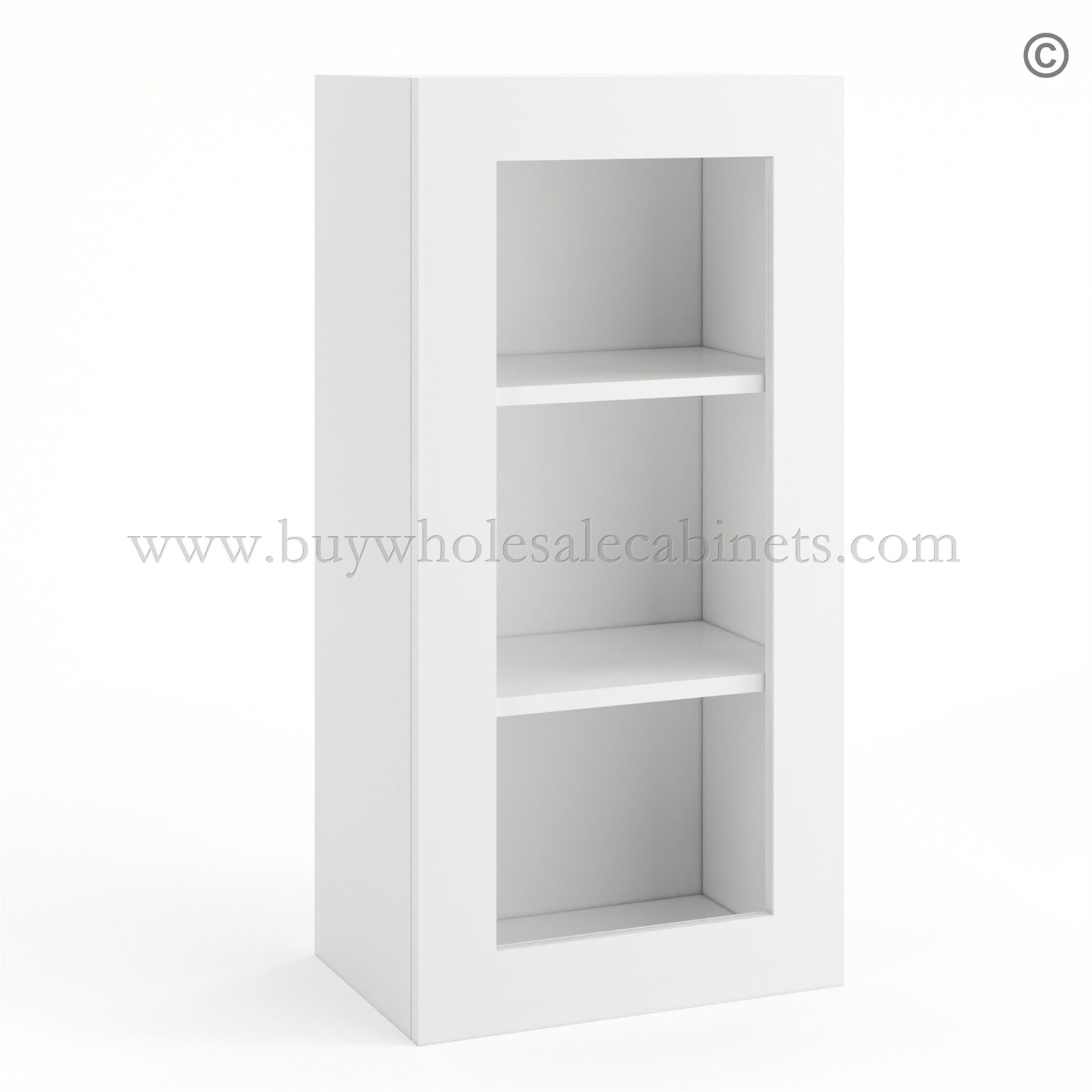 Frameless Modern White Shaker Wall Mullion Door – 1 Door 2 Shelves – Glass And Clips Not Included.