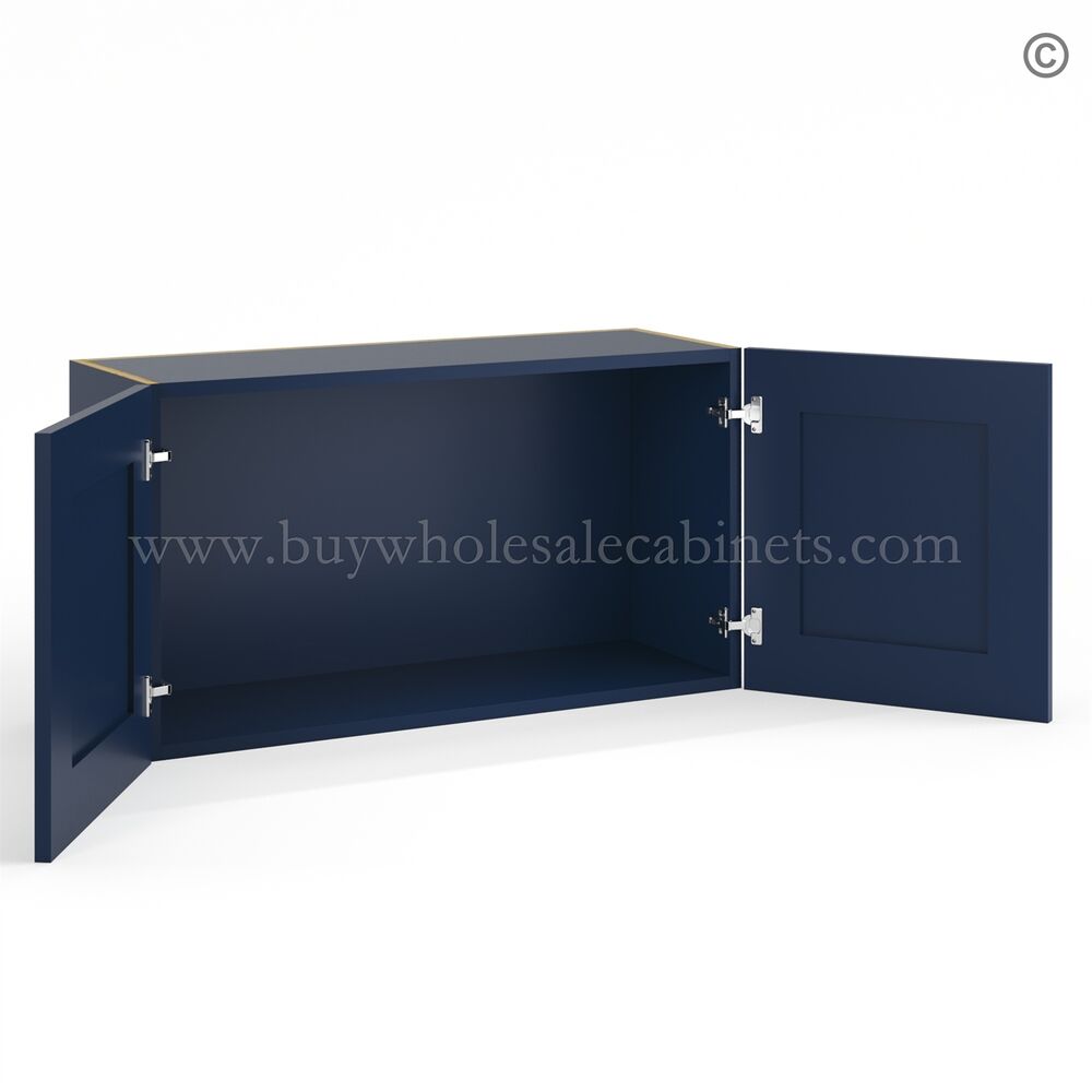 Frameless Oxford Blue Deep Wall Cabinet – 2 Doors No Shelf – 12″D, 24″W