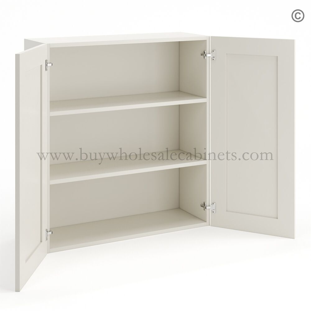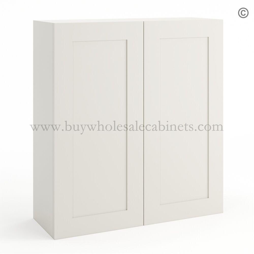 Frameless Pearl White 36″ Tall Wall Cabinet – 2 Doors 2 Shelves