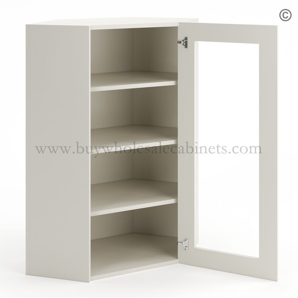 Frameless Pearl White Diagonal Mullion Door with 3 Shelves – No Glass 12″ deep, 24″ wide, and available in three heights ( 30″, 36″, 42″)